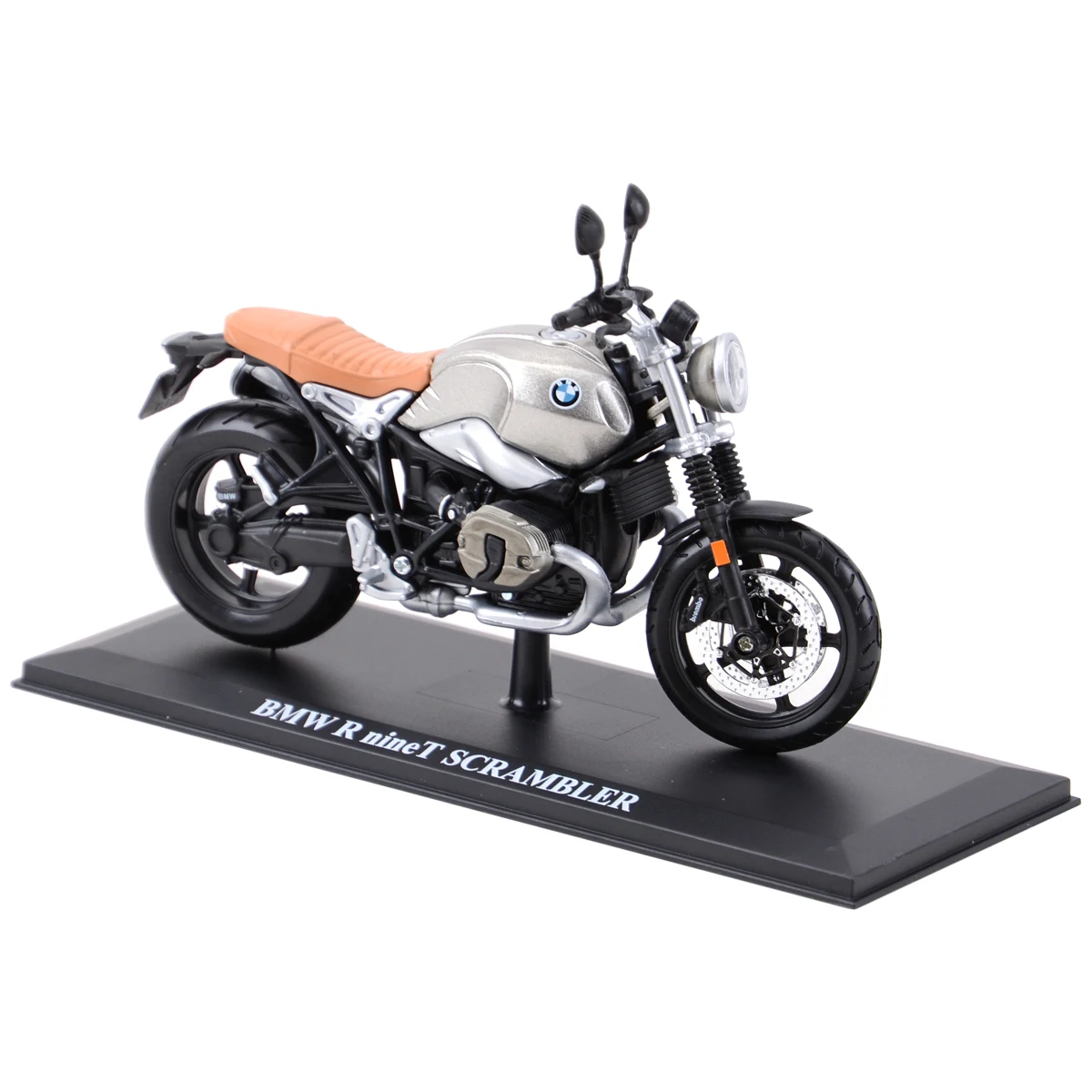 - Chrome accents on the exhaust system add metallic shine, and the detailed craftsmanship showcases precise components like suspension, wheels, and controls.