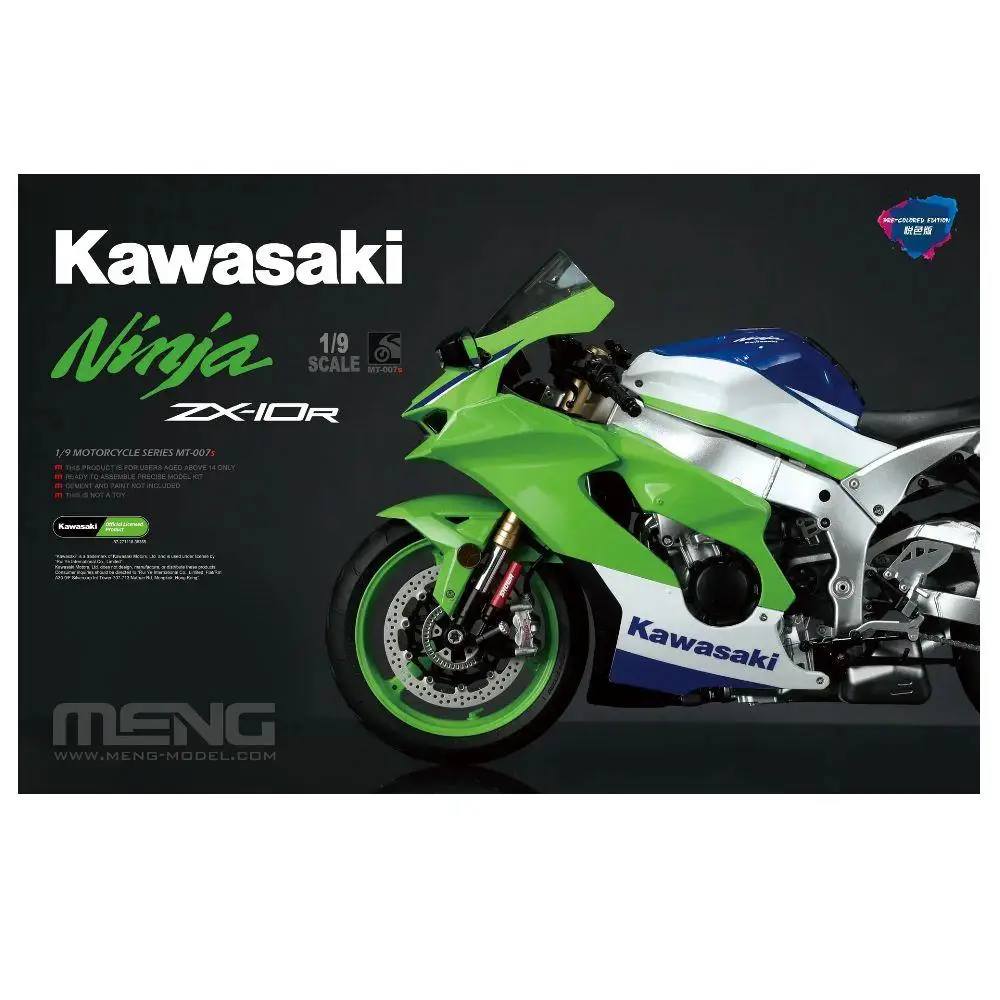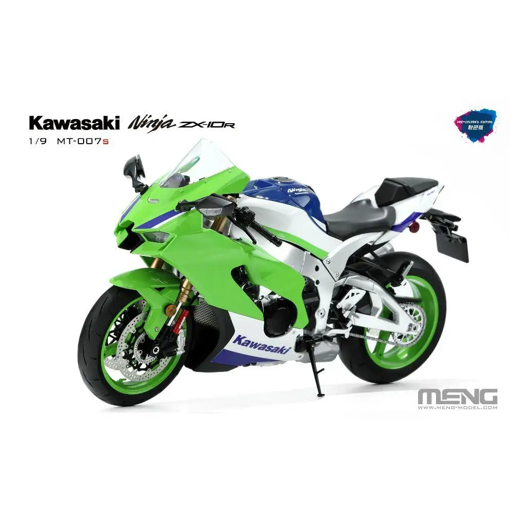 Create your own stunning Kawasaki Ninja ZX-10R 1/9 scale model with this premium plastic kit, featuring pre-colored, high-quality durable parts. The detailed aerodynamic fairings, suspension components, disc brakes, and realistic decals capture the bike’s sporty and aggressive aesthetic, showcasing vibrant green, crisp white, and sleek blue accents. Designed for ages 14 and above, the kit includes an organized plastic screw storage box (screws not included) for easy assembly, allowing enthusiasts to build a lifelike replica perfect for display or customization. With high-resolution graphics and intricate details, this model offers a rewarding hobby experience and a striking showcase of motorcycle craftsmanship.