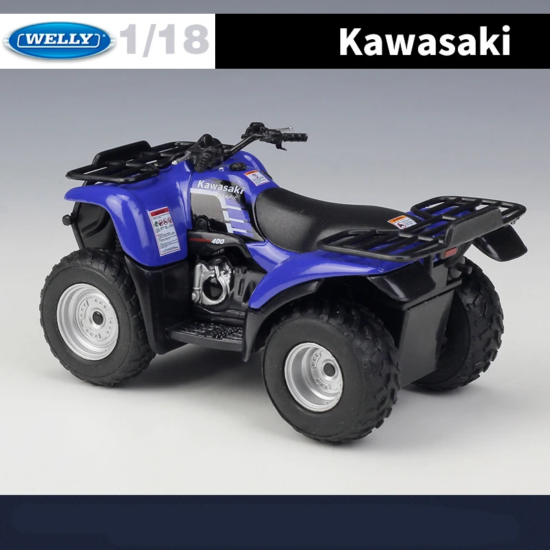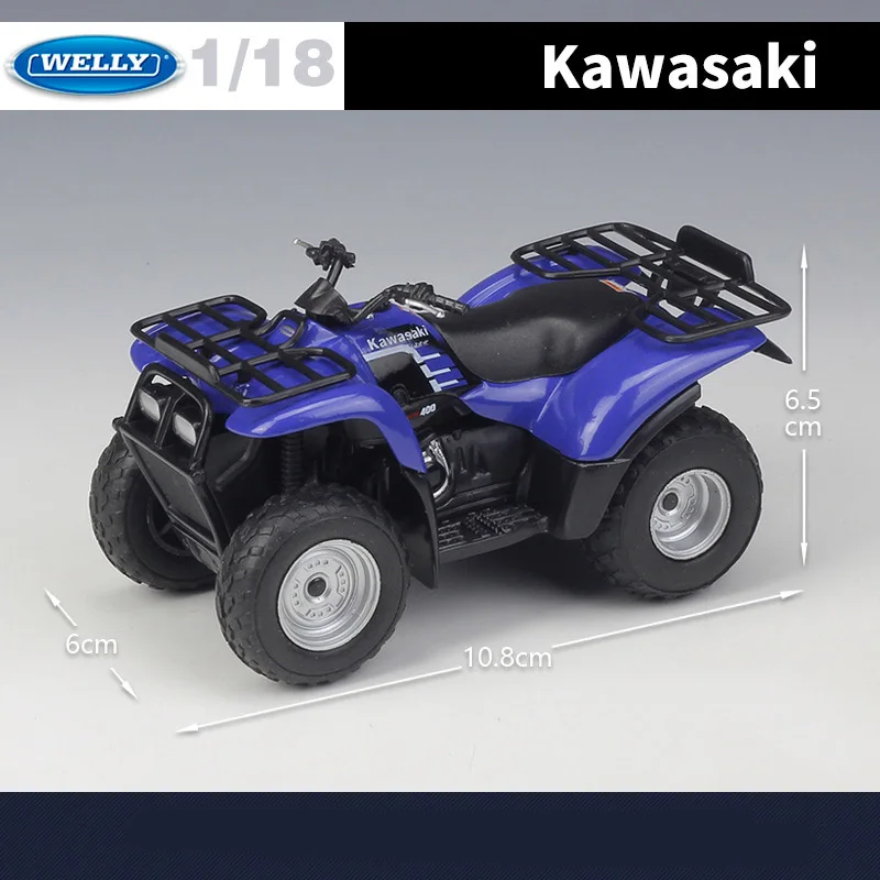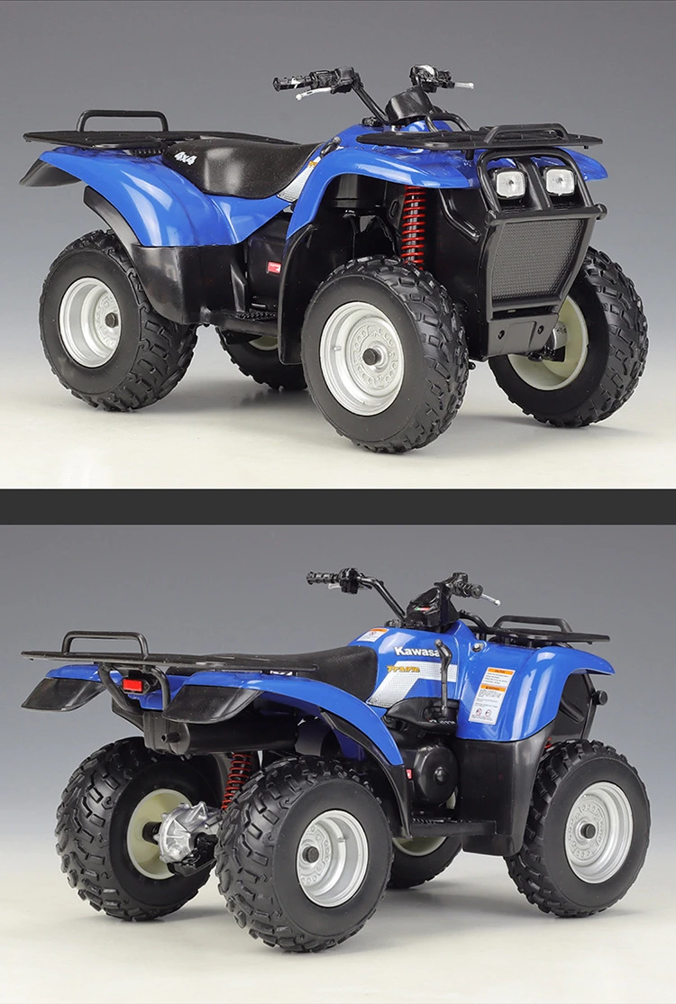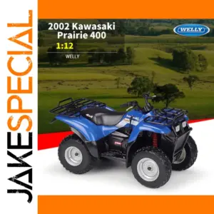 - Detailed 1:18 scale miniature made from durable alloy and plastic, with high simulation detailing for realism and longevity. It accurately replicates the actual Kawasaki Prairie 400 ATV’s rugged features.