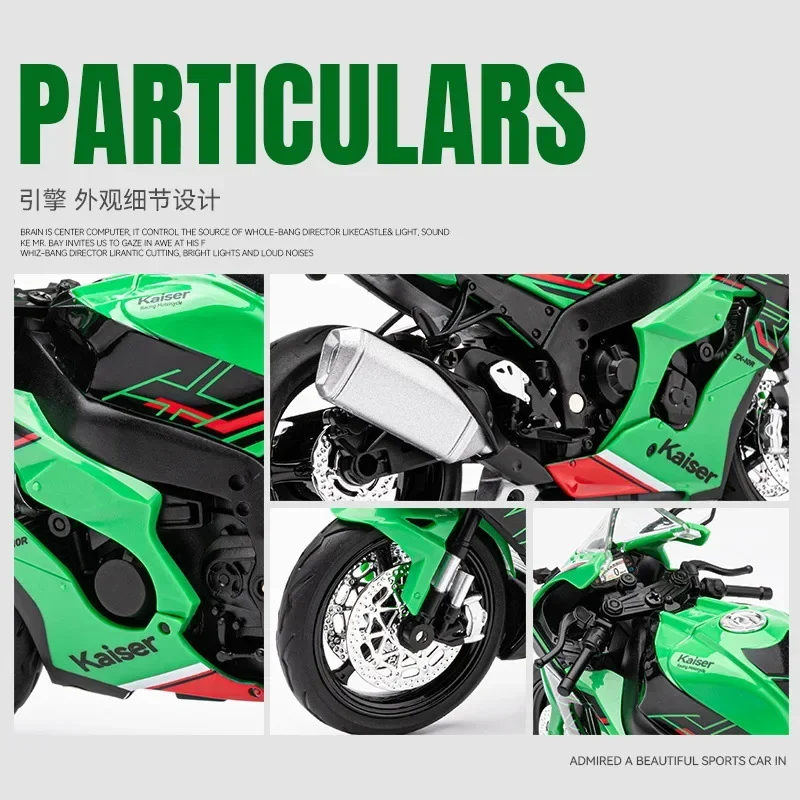 - Authentic 1:12 scale motorcycle replica built from heavy-duty metal with fine detailing of Kawasaki ZX-10R features for collectors. Perfect for display or decorative purposes in high-quality environments.