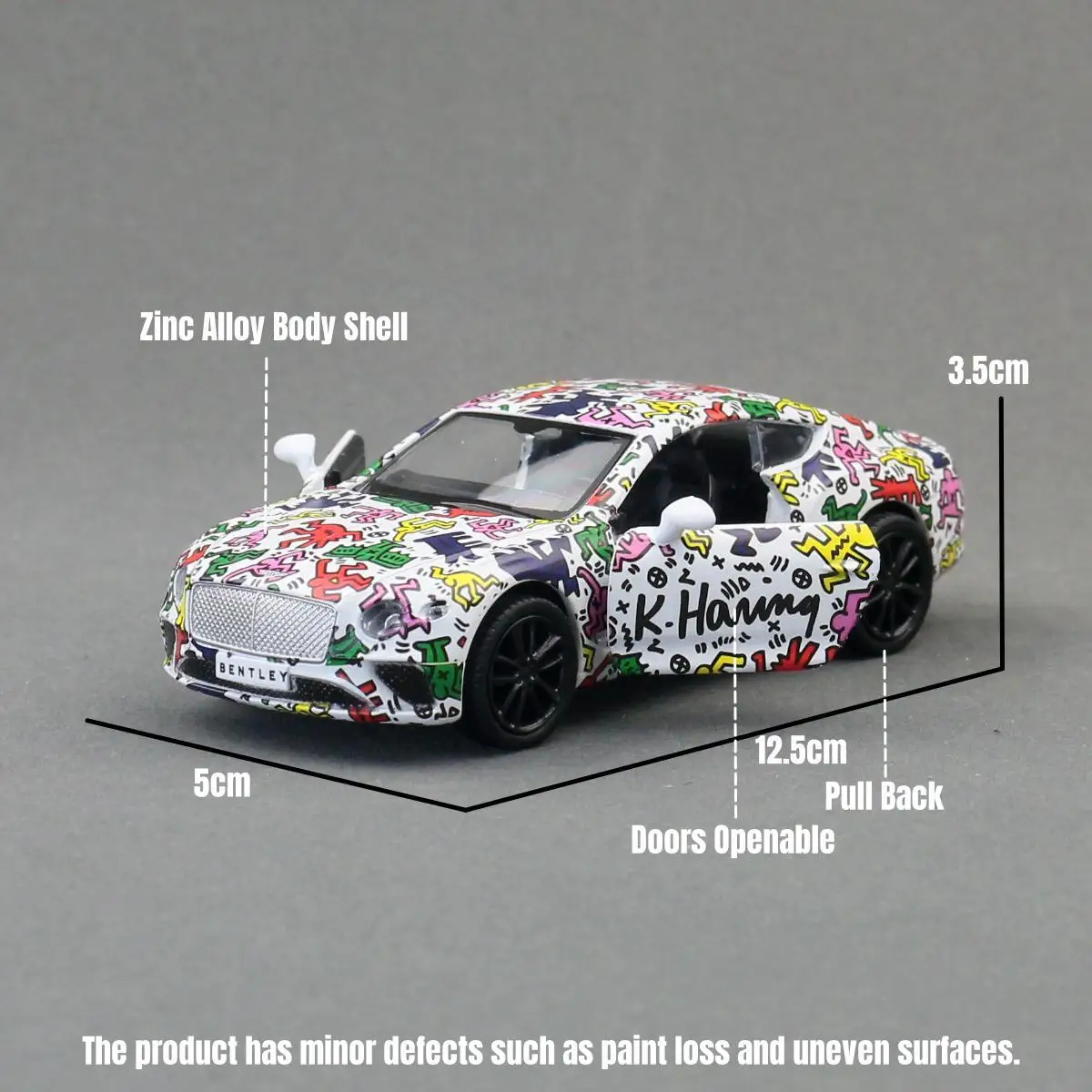 - Available in vibrant colors including Bentley GT, Ford Mustang GT, Maserati GT MC, Toyota Supra, Volkswagen T1 Bus, and VW New Beetle, each styled with bold graffiti motifs from Keith Haring.