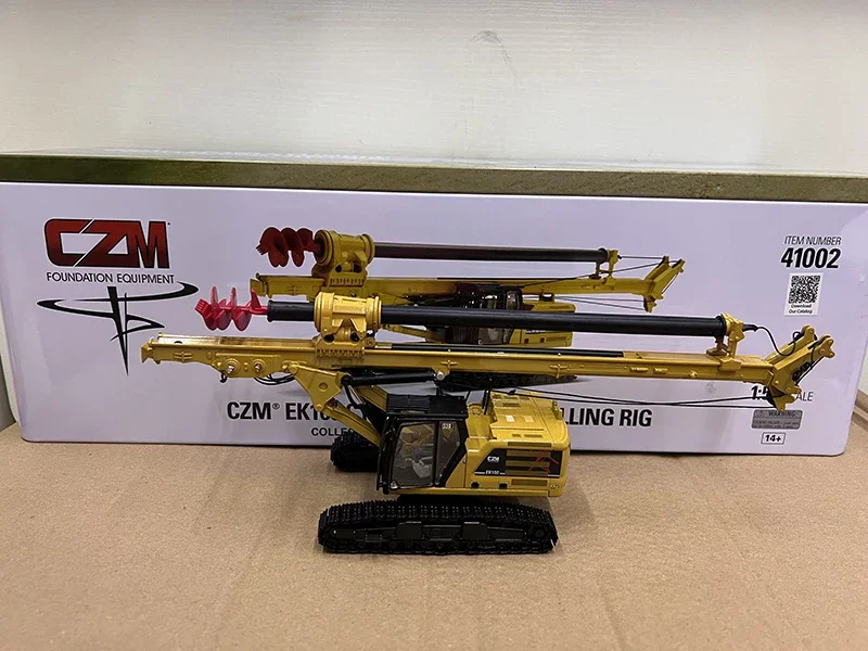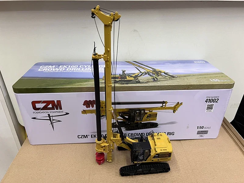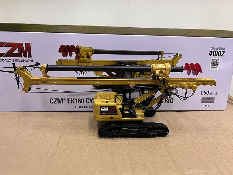 Experience the impressive craftsmanship of this highly realistic 1:50 scale diecast alloy model of the Kelly-Drilling Rig EK160. With its vibrant yellow finish accented by bold black components, this miniature captures the iconic look of heavy construction machinery. Every element, from the hydraulic lines to the structural beams, has been intricately crafted to mirror its real-life counterpart. The telescoping horizontal arm features visible joints and supports, highlighting mechanical detail, while the red spiral drill bit at the front adds a striking visual pop. This model offers a blend of color, texture, and technical precision, making it perfect for collectors, building enthusiasts, or display in your office or study. Its detailed, colorful design elevates any collection or decor with an industrial touch.