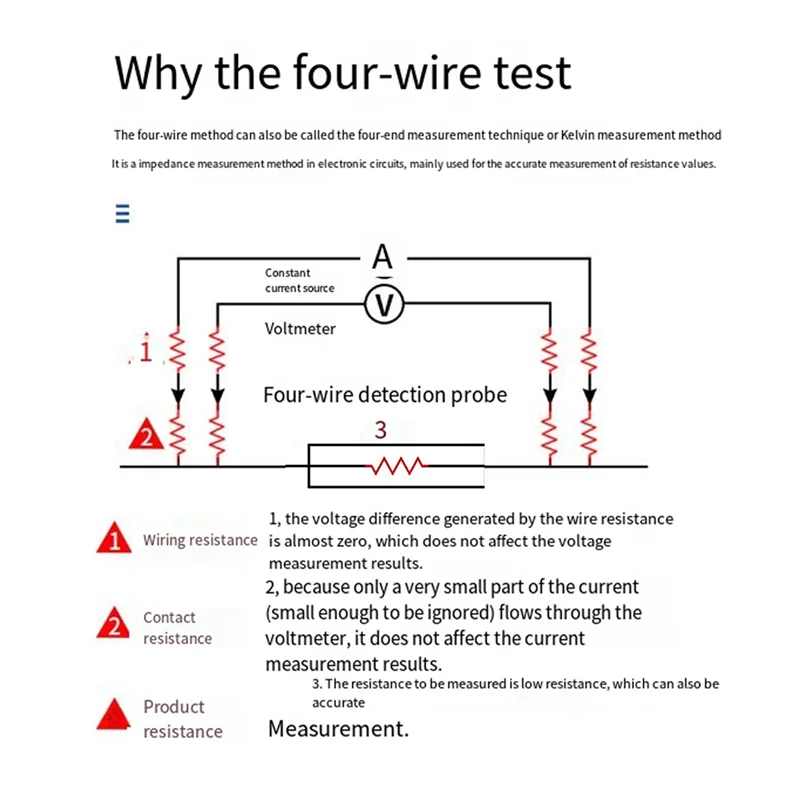 - Each lead is 1 meter long with high-conductivity copper wires for accurate measurements of low-resistance components.