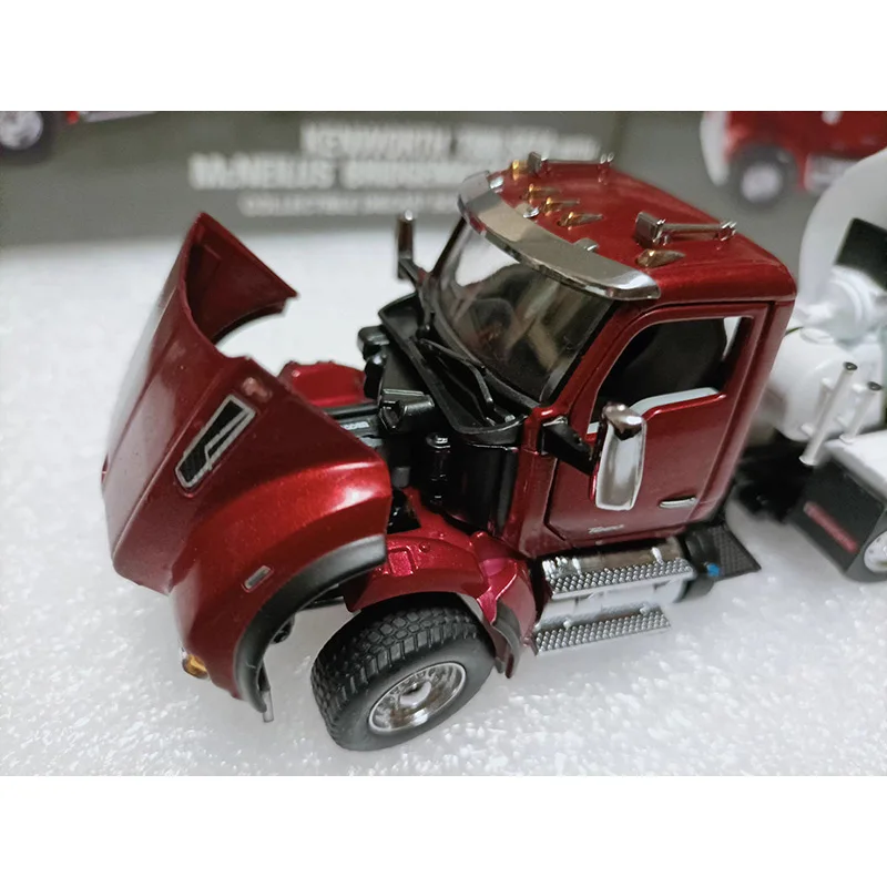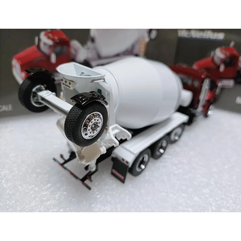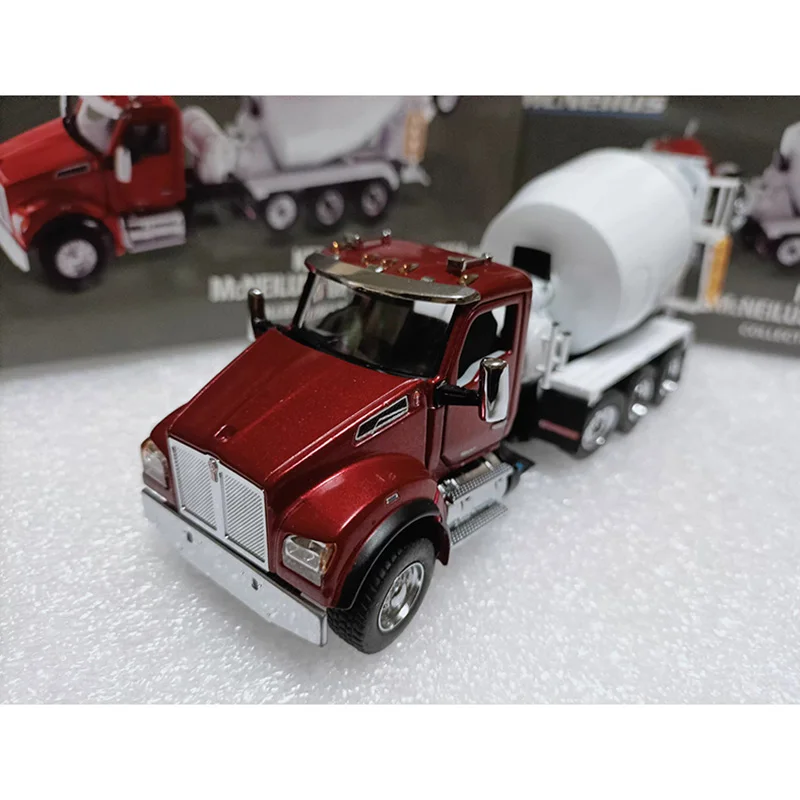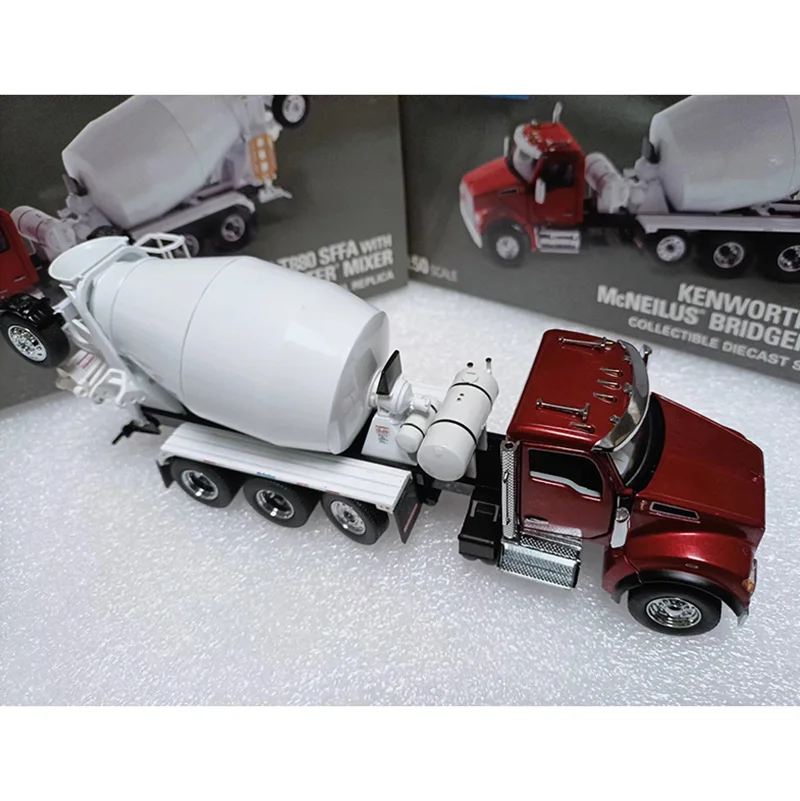 This 1:50 scale diecast alloy model of a Kenworth T880 Mixer Concrete Truck features a vibrant red cab with detailed windows, grille, and side mirrors, paired with a glossy white mixer drum with reinforcement ribs, bolts, and discharge chute for realistic detail. Measuring to a scale of 1:50, this sturdy collectible showcases intricate craftsmanship and authentic design elements, making it an ideal display piece for collectors. Crafted from alloy material, it is non-electric, battery-free, conforms to safety standards, and comes in its original box. Suitable for ages 14 and above, this finished model combines durability and striking visual detail, perfect for enhancing any collection.