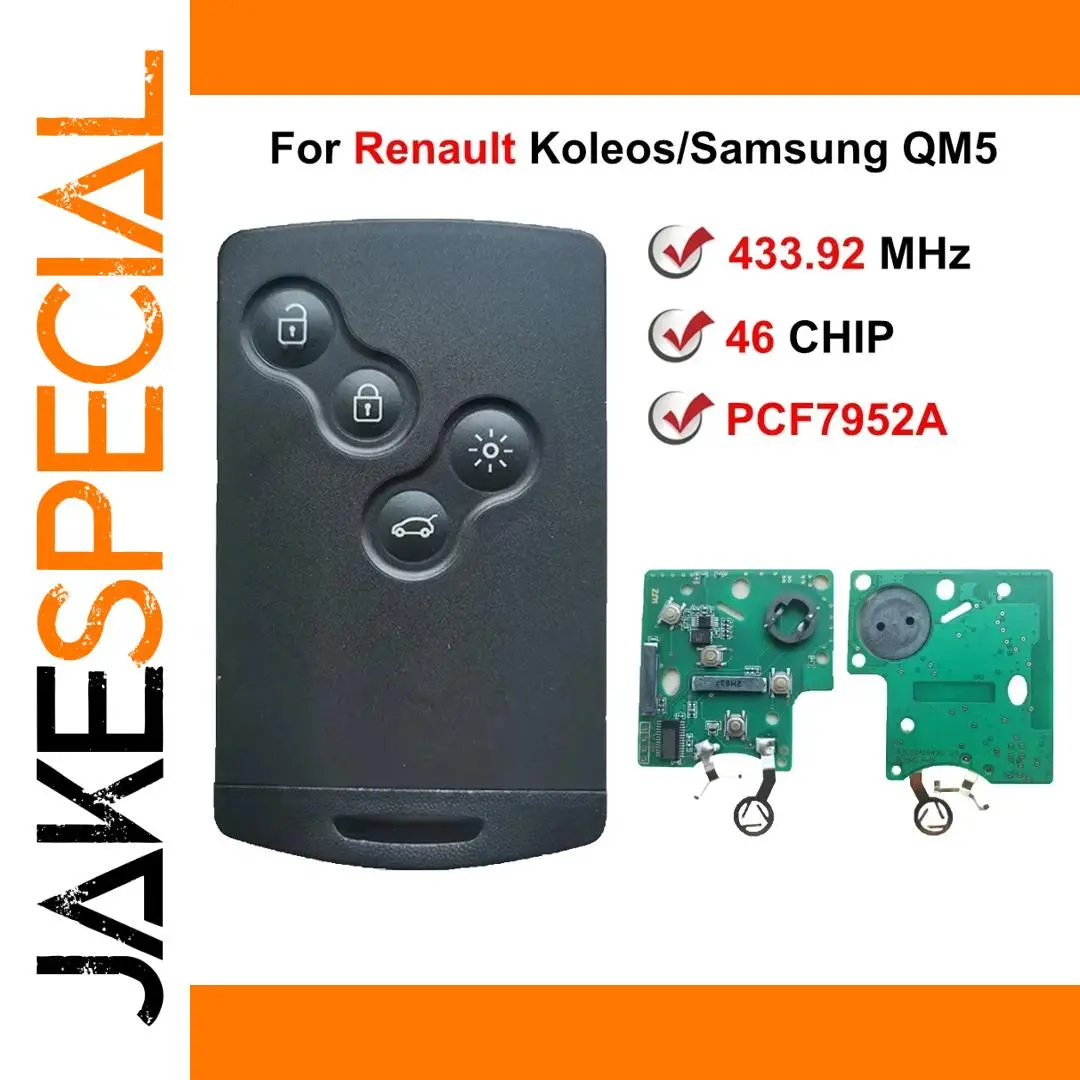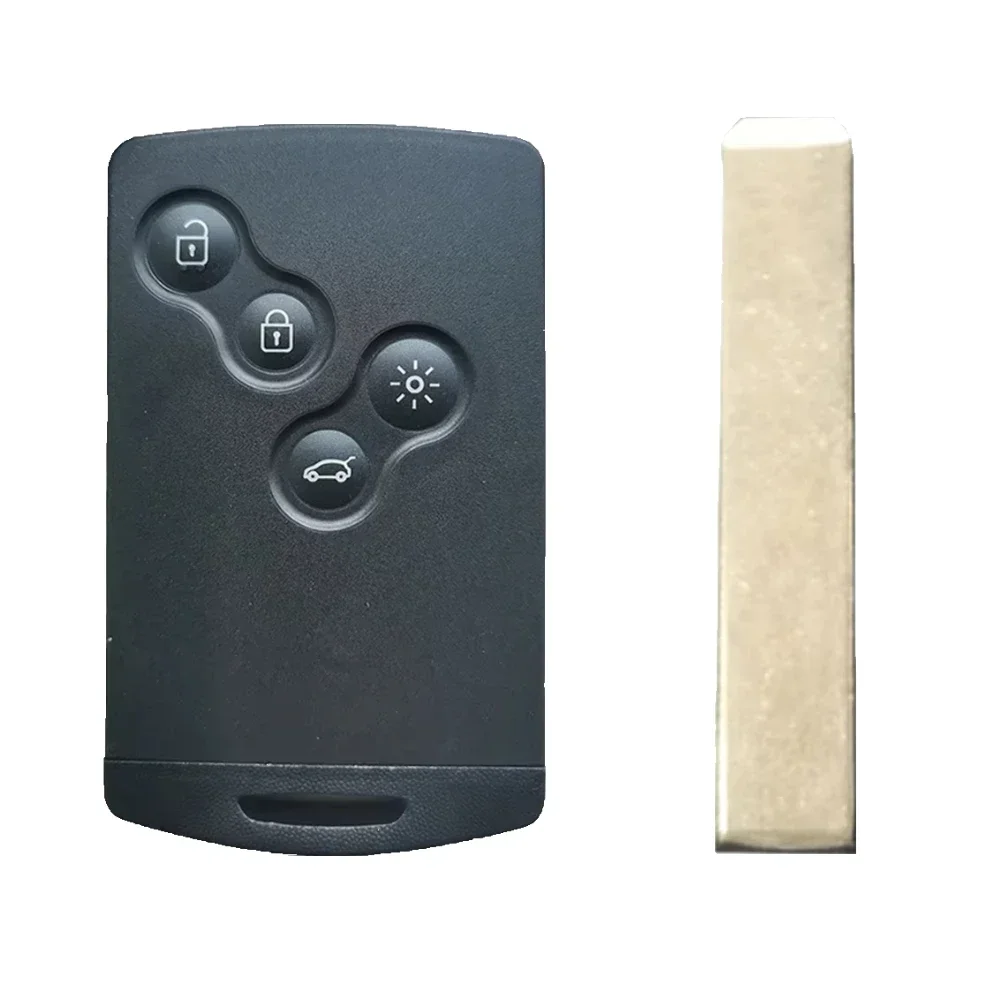 This keyless smart key remote is designed specifically for Renault Koleos and Samsung QM5 models from 2008 to 2011, offering a perfect blend of elegance and function. Featuring a sleek black design with a compact rectangular shape, it fits seamlessly into your lifestyle. The remote is equipped with four distinct buttons, each indicating their specific purpose through smooth embossing for easy identification. Its durable construction combines a robust plastic casing and intricate metal components within. With a reliable frequency of 433.92 MHz, your vehicle can be accessed easily and securely. Enjoy the convenience and peace of mind that comes with a high-quality replacement remote made to meet your needs.