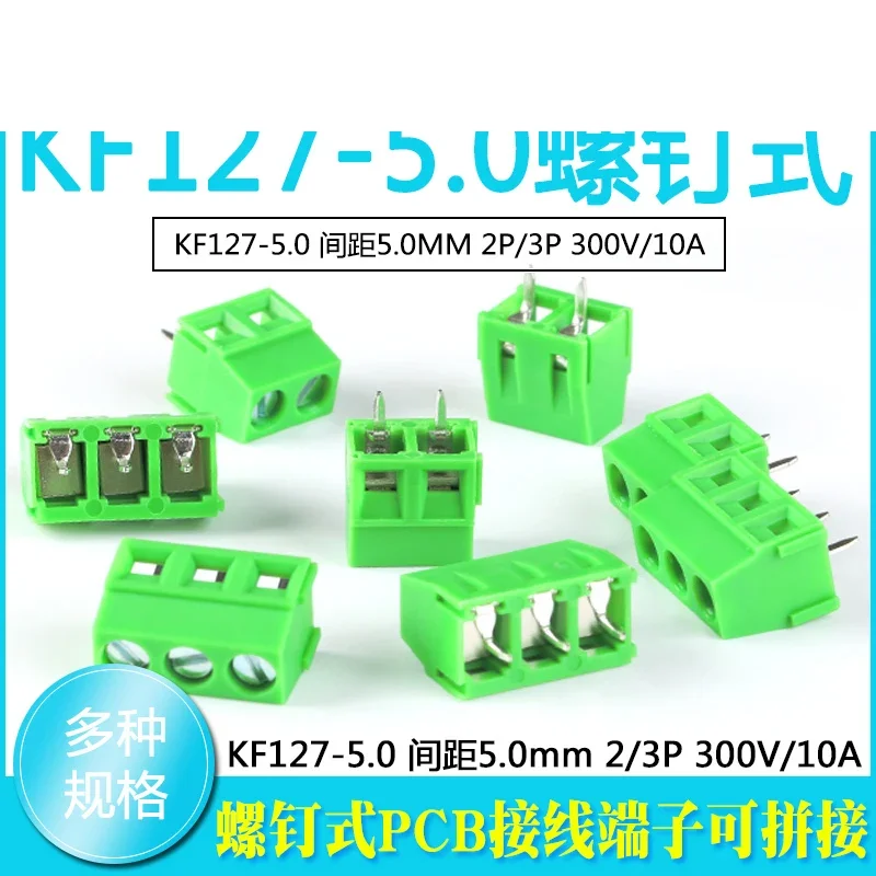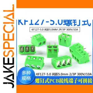 Imagine connecting your electronic projects with confidence using this high-quality KF127-5.0 screw PCB terminal. Its vibrant green plastic housing adds a modern touch, while the compact rectangular design ensures easy installation on your circuit board. The terminal features a flat top surface with metallic screw terminals, providing secure and durable wire connections. Available in 2P and 3P configurations, it supports up to 300V and 10A, making it suitable for various electrical applications. Whether you're prototyping or assembling final products, this terminal promises stability, electrical safety, and easy maintenance. Its robust construction and precise design reflect your commitment to quality and efficiency in every project you undertake, helping you create reliable and professional electronic systems. Trust this component for your next project needs.
