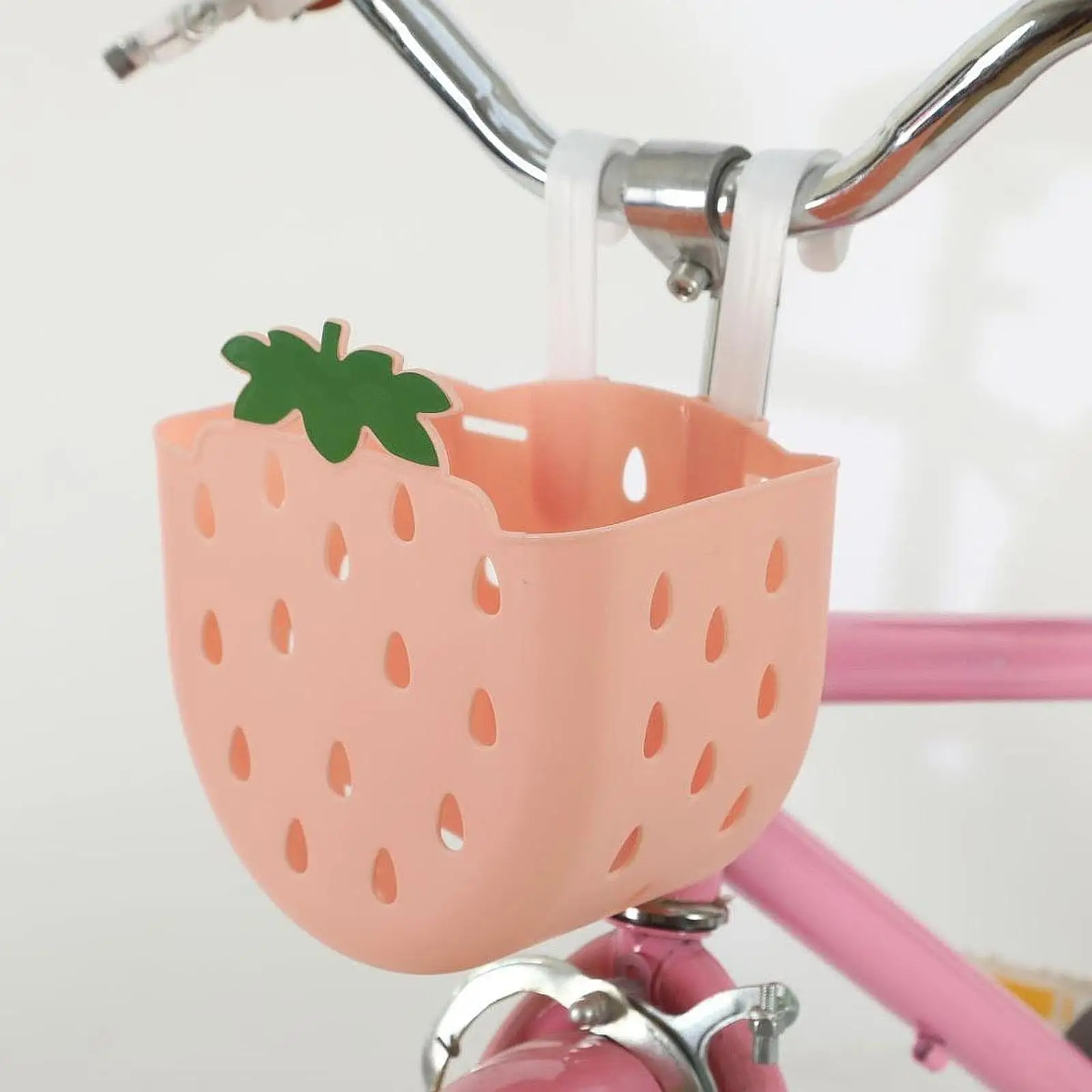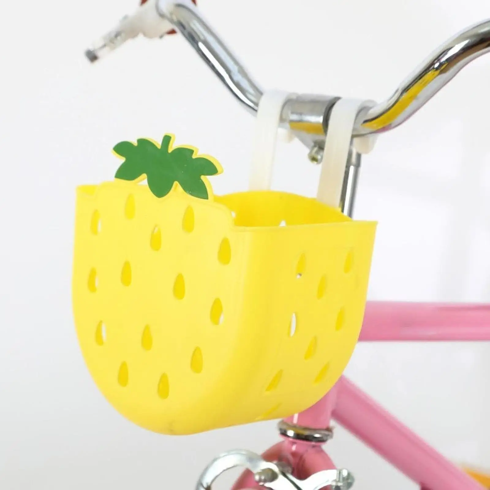 Experience the joy of outdoor adventures with this vibrant kids bike basket, designed to add a playful touch to any child's bicycle. Crafted from high-quality plastic, it combines durability and lightweight comfort, making every ride more enjoyable. Its eye-catching pink and yellow hues are complemented by a cheerful strawberry-shaped design, complete with perforated oval cutouts for a whimsical look. Easy to install without tools, this basket securely attaches to the front handlebar, offering a practical space for carrying small items during leisure rides, shopping trips, or picnics. Its removable feature allows effortless detachment for carrying or cleaning, making it an ideal accessory for active little explorers.
