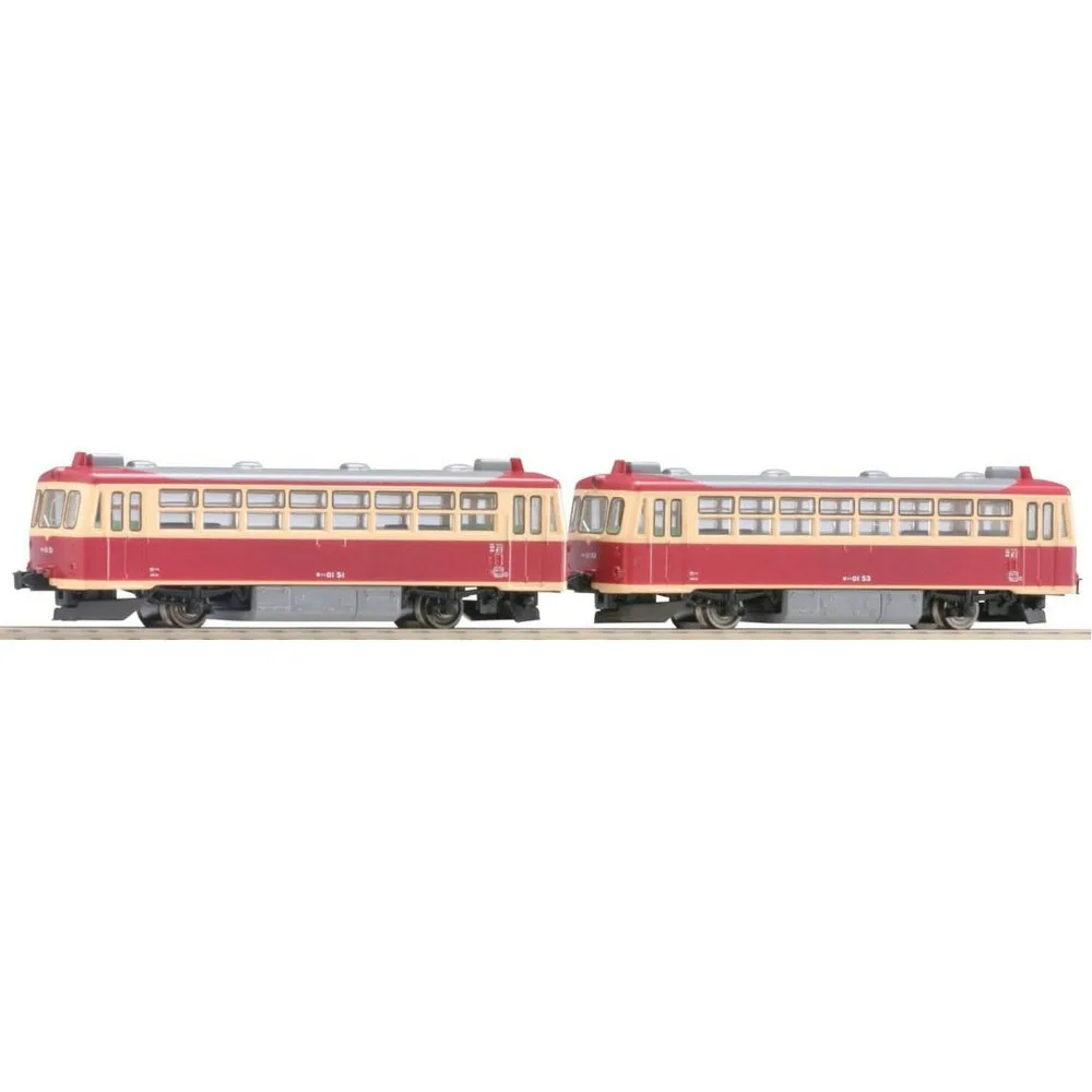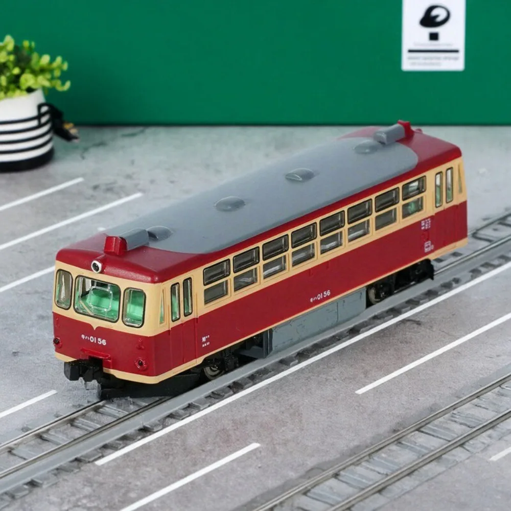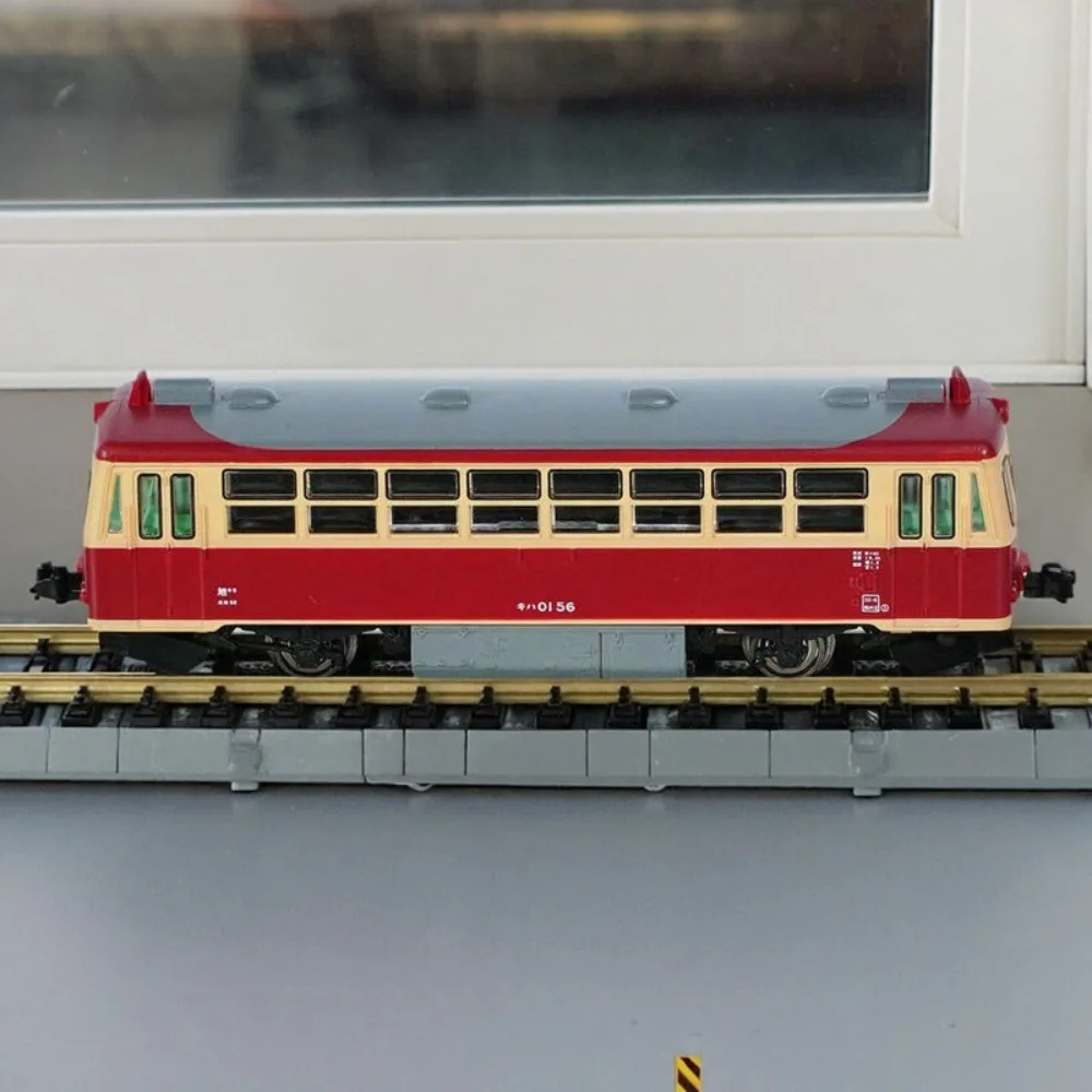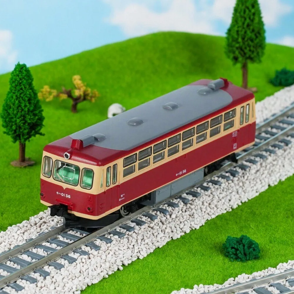 Experience a nostalgic journey with this exceptionally detailed miniature of the KIHA01 series, a historic Japanese two-axle diesel train. Crafted at a 1:160 scale, this model captures the iconic design and vibrant red color scheme with cream accents, faithfully reflecting the original vehicle's vintage charm. Its smooth, rectangular body features rounded ends and contrasting glossy windows that add depth and realism. The grey, gently curved roof includes small raised details that enhance authenticity. With precise attention to the front windshields, headlights, and ventilation grilles, this model evokes the quiet elegance of a bygone era. Whether displayed or used on compatible tracks, it invites you to relive railway history with every glance, making it a treasured addition for enthusiasts and collectors.