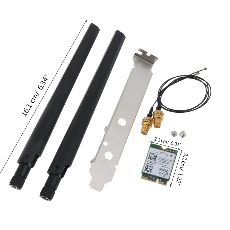 Experience the pinnacle of wireless connectivity with the Killer 1690i AX411NGW WiFi6E Tri-band wireless card. Engineered for high-speed performance, this compact card seamlessly operates on 2.4GHz, 5GHz, and the latest 6GHz frequency bands, providing you with unmatched internet access for all your devices. With Bluetooth 5.3 capability, you can enjoy enhanced connectivity while ensuring robust wireless security without the hassle of additional drivers. Its sleek design, featuring a vibrant green finish and a durable metal backing, makes it a stylish addition to your tech setup. Visualize yourself seamlessly streaming, gaming, and working from home with this powerful wireless card bringing you lightning-fast internet speeds.