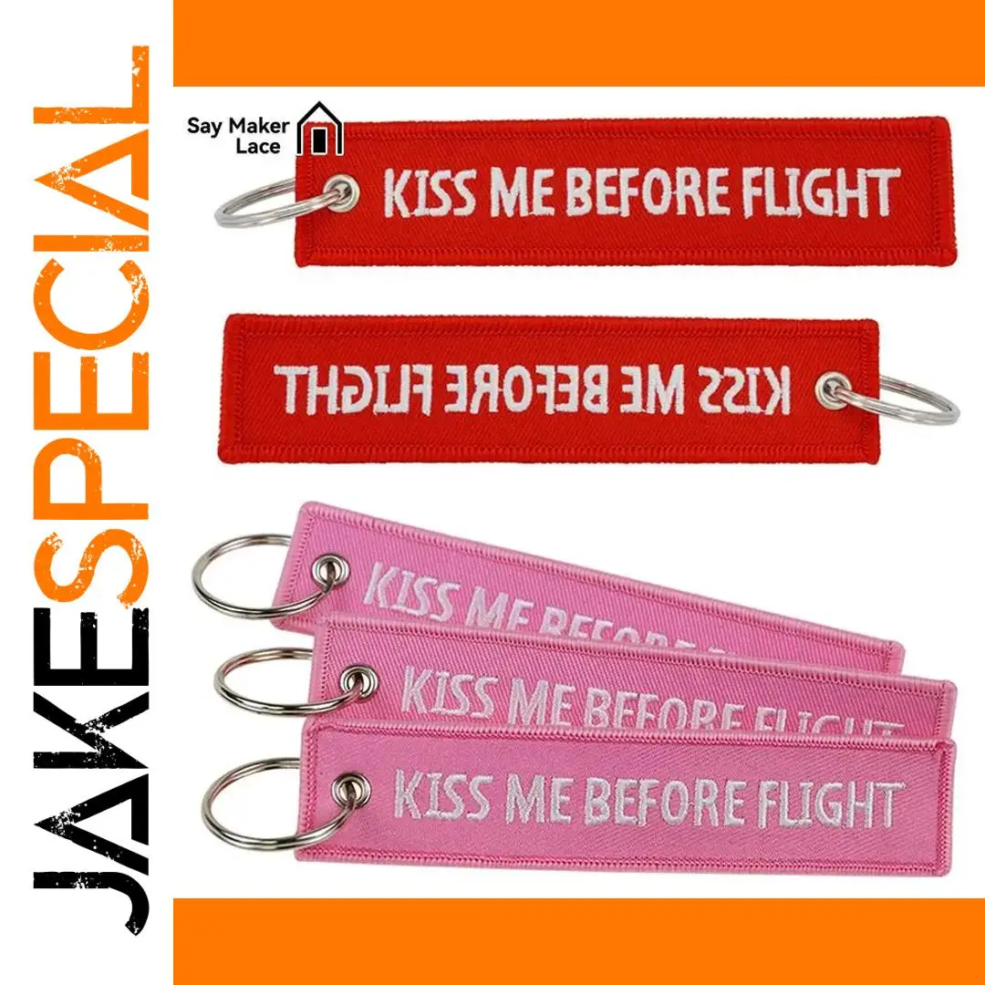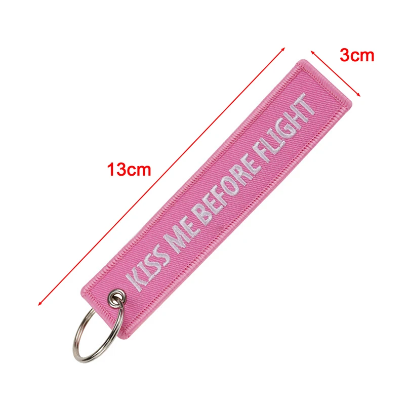 Experience a playful and vibrant accessory that instantly adds charm to your keys or bag. This keychain features a durable polyester fabric strap embroidered with a bold, white “KISS ME BEFORE FLIGHT” message. Its bright red and soft pink color options make it an eye-catching and fashionable piece suitable for both men and women. The rectangular shape measures 13 cm long by 3 cm wide, reinforced with neat stitching for durability. Attached to a shiny, zinc alloy 25 mm diameter keyring via a reinforced fabric loop, it offers a sleek, polished look. Ideal for aviation-themed gifts, Christmas presents, or personal use, this keychain seamlessly blends fun with style in a high-quality design.