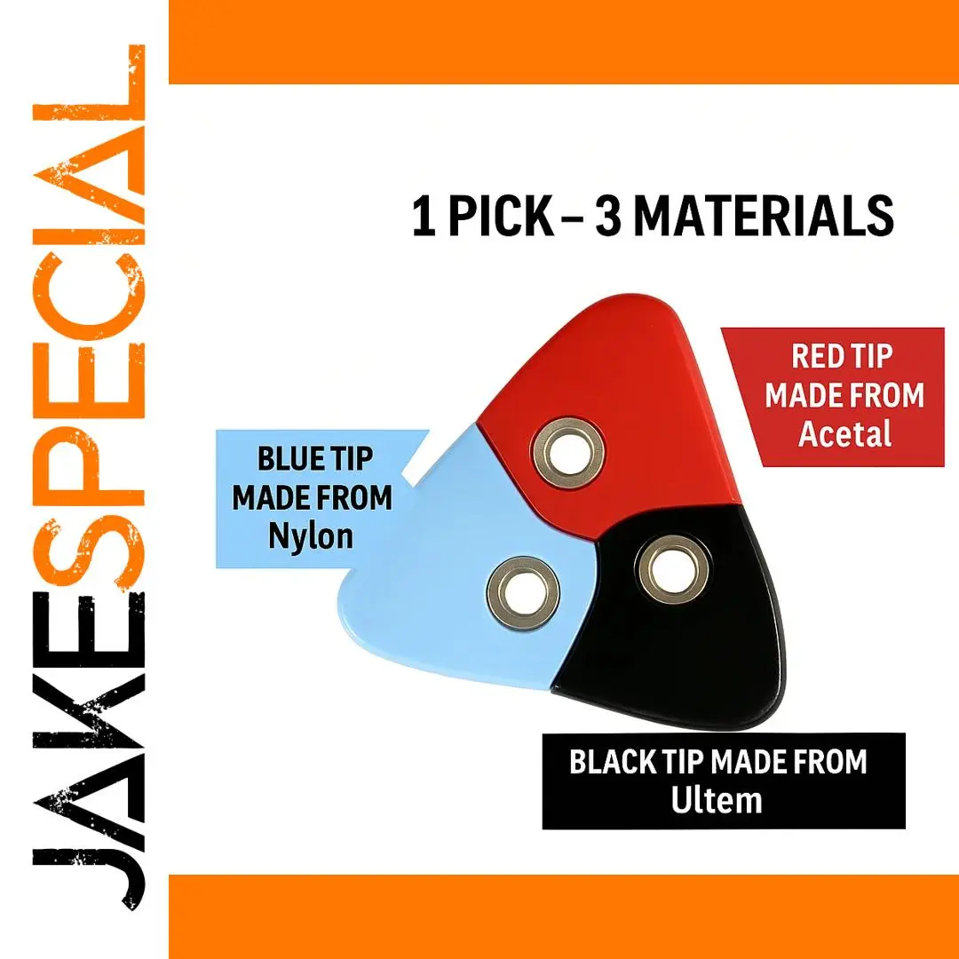 Experience the ultimate in guitar pick innovation with this carefully crafted Kizai Music Asteroid Guitar Pick. Designed for players who demand flexibility and tonal variety, this 3-in-1 pick features three easily interchangeable tips, allowing you to switch effortlessly between different sounds and playing styles. Whether you're strumming lively rhythms, laying down warm melodies, or shredding fast solos, this pick adapts to your needs with a simple rotation. Its sleek, ergonomic teardrop shape and glossy finish offer comfort and a premium feel. The vibrant color-coded tips—blue, red, and black—help you quickly identify each material's tone, while the central metal rivet ensures a secure grip and perfect visual alignment. Elevate your guitar experience now.