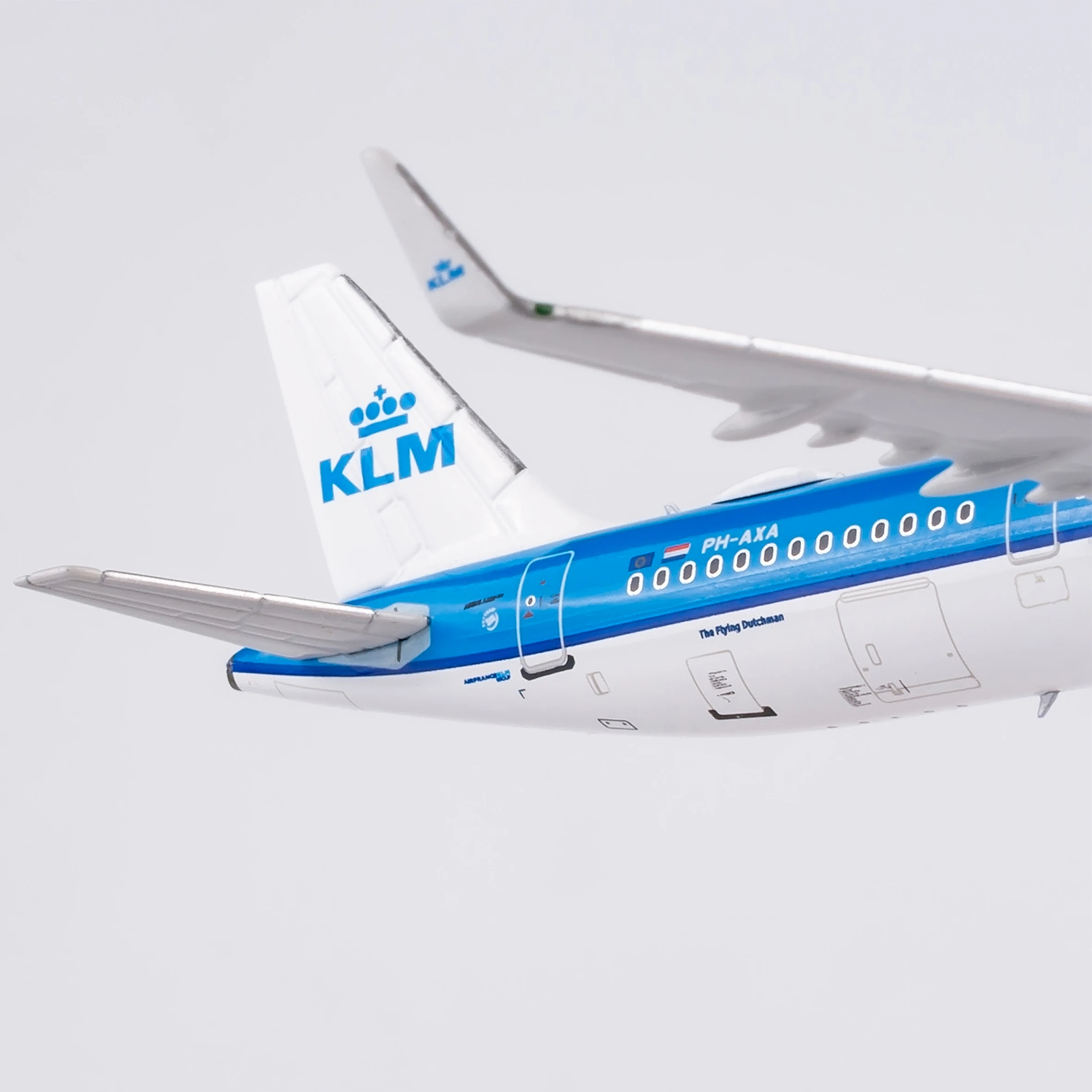 - Features detailed branding with the KLM Royal Dutch Airlines logo, tail crown, and realistic engine markings, enhancing its authentic appearance as a collector’s item.