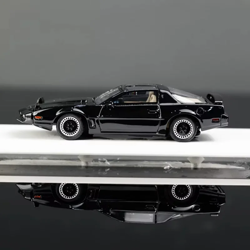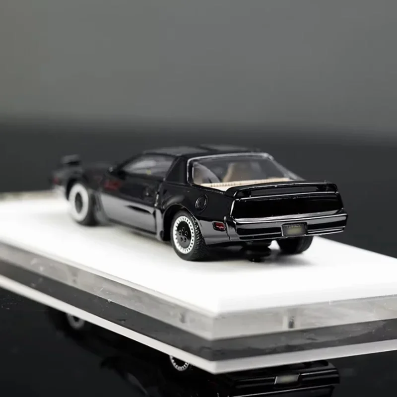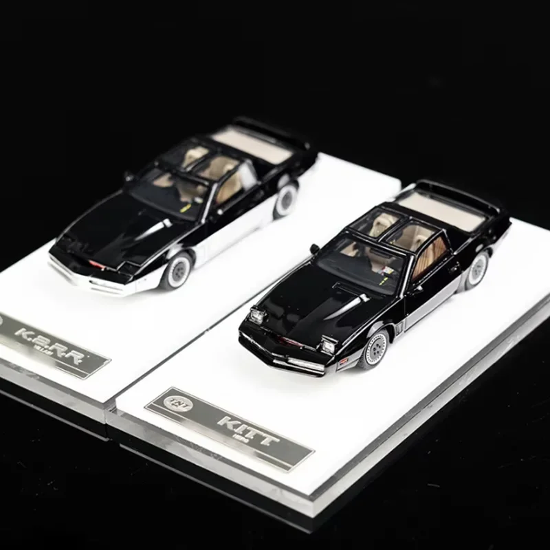 Experience the striking craftsmanship of this 1/64 scale resin static model, measuring approximately 7 cm in length, available in two variants: KITT and KARR. Crafted from fine resin material with intricate detailing, it captures the sleek, aerodynamic design of the classic Pontiac Firebird, featuring a glossy black finish with silver accents along the sides, wheel arches, and lower panels. The transparent windows reveal a subtle interior, while the finely designed wheels showcase black tires with silver rims. Perfect for display, collection, or as a gift, this handmade model emphasizes realism and quality craftsmanship, making it an eye-catching addition to any automotive or memorabilia collection.