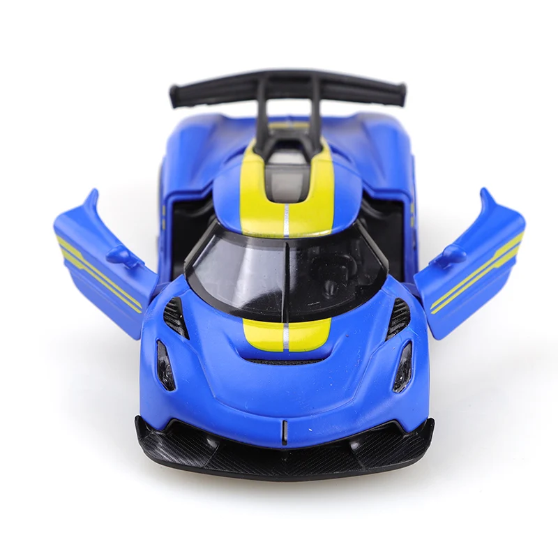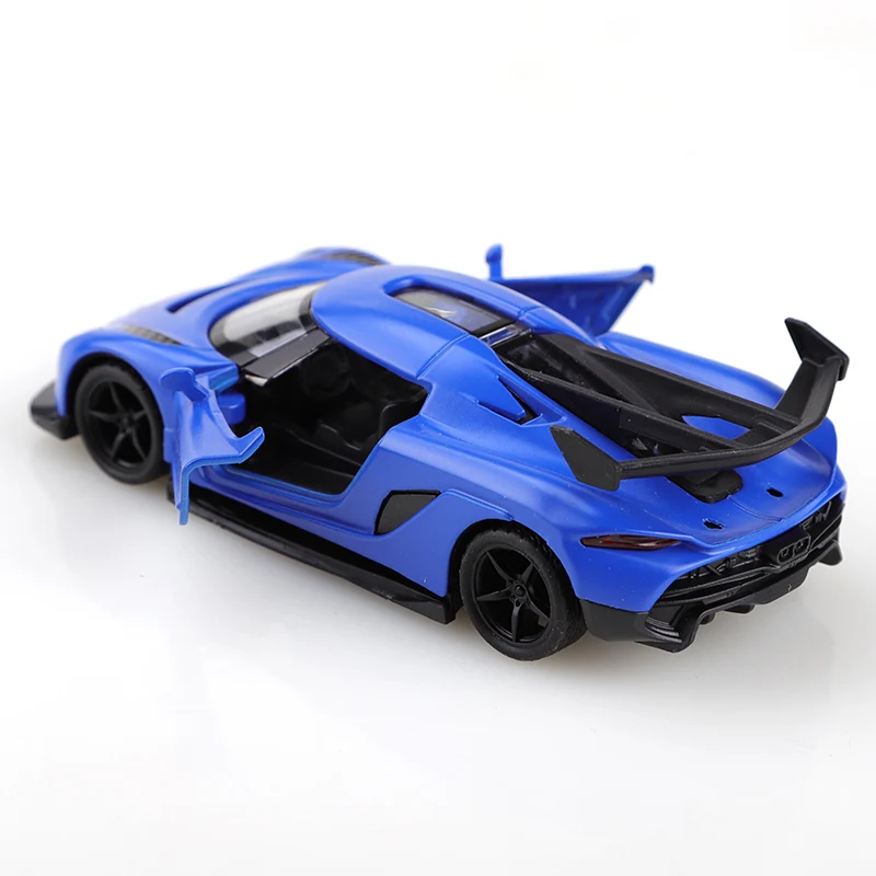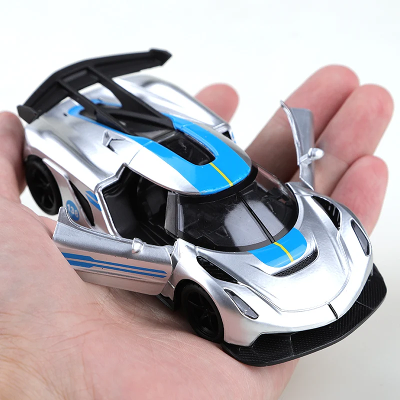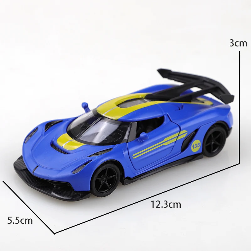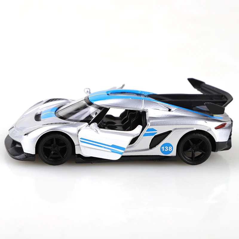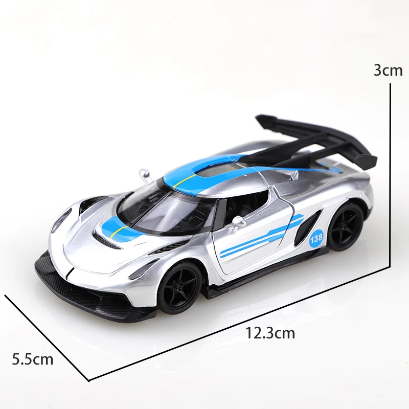 Imagine holding a miniature masterpiece that captures the sleek High-performance style of a Koenigsegg racing vehicle. This detailed diecast alloy model, scaled at 1:36, exudes realism with its glossy finish and dynamic accents. Available in four vibrant colors—silver, black, yellow, and blue—this model boasts intricate design elements, including sculpted lines, subtle air vents, and a prominent rear wing spoiler for an aggressive racing look. Its transparent windows reveal a meticulously crafted interior, and the black rims on the tires add to its authentic appearance. Perfect as a collectible or elegant car ornament, this model combines craftsmanship and style, appealing to both enthusiasts and collectors. Its compact size makes it a striking display piece for any setting.