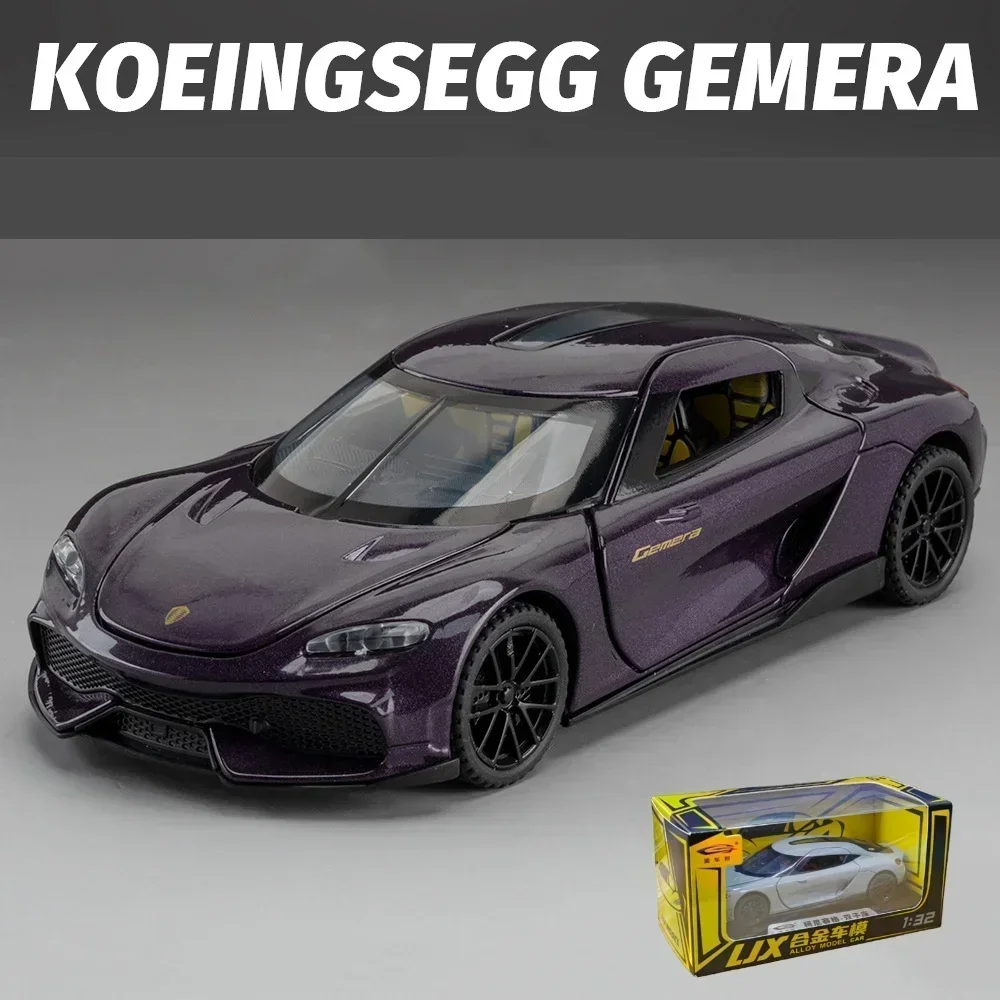 This stunning 1:32 scale diecast model of the Koenigsegg Gemini sports car captivates with its vibrant purple paint and glossy, metallic finish. With scissor doors that open to reveal an intricately detailed interior featuring striking yellow accents, it serves as an eye-catching piece for collectors and young enthusiasts alike. The model is designed to operate using a convenient button battery system, eliminating the hassle of external batteries. A low-slung grille and realistic headlights enhance the authenticity, while the multi-spoke black wheels complete its sporty look. This diecast model is perfect for imaginative play, blending impressive aesthetics with interactive sound and light features.