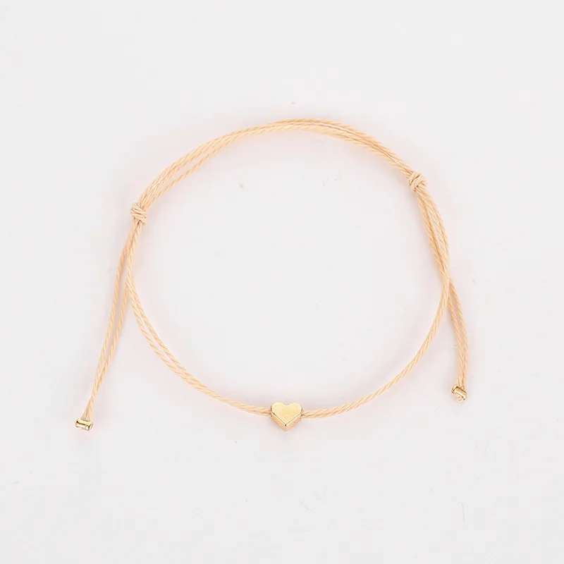 Elevate your casual chic with this handmade Korean beige rope bracelet featuring an adjustable heart-shaped charm. Crafted with a delicate rope-style chain and a zinc alloy component (model number S025) in a neutral metal tone, this minimalist accessory offers a bohemian-inspired look. Its lace-up clasp provides an adjustable fit, making it perfect for women seeking subtle elegance. The bracelet embodies a handcrafted, artisanal feel with a soft, warm color palette and clean lines. Suitable for everyday wear, it is packaged in an OPP bag and available for retail, drop shipping, or wholesale, adding a touch of understated sophistication to any outfit.