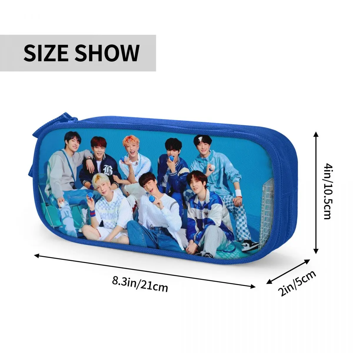The perfect blend of functionality and flair, this Kpop Star Singer Idol Pencil Case boasts a vibrant blue design, featuring a cheerful graphic of seven individuals in casual attire. This larger capacity pencil case is perfect for students, effortlessly accommodating all your essential stationery items with ease. The zippered closure secures your belongings while the organized interior with elastic bands ensures efficient storage. Imagine yourself sporting this trendy accessory at school or the office, effortlessly showcasing your love for K-pop culture. With its durable build, this pencil case is ready for everyday use, making it an essential item for young enthusiasts seeking both style and practicality.