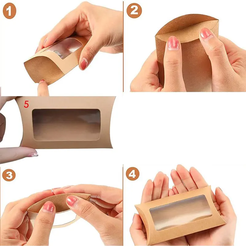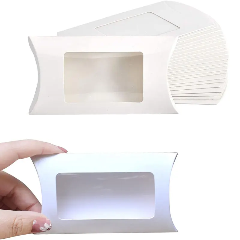 Create memorable moments with these versatile kraft paper pillow-shaped gift boxes available in sets of 10, 30, or 50. Measuring 12.5 x 7 x 2 cm, these charming boxes come in classic colors of white, black, and khaki, featuring a rustic matte finish and rounded, organic edges. Each box includes a transparent rectangular window on the top, perfect for showcasing colorful candies or small gifts inside. Crafted from durable, non-chemical paperboard, they are ideal for DIY gift packaging and party decorations for occasions like weddings, birthdays, Christmas, Valentine’s Day, Halloween, Easter, and more. Add a handcrafted touch to any celebration.