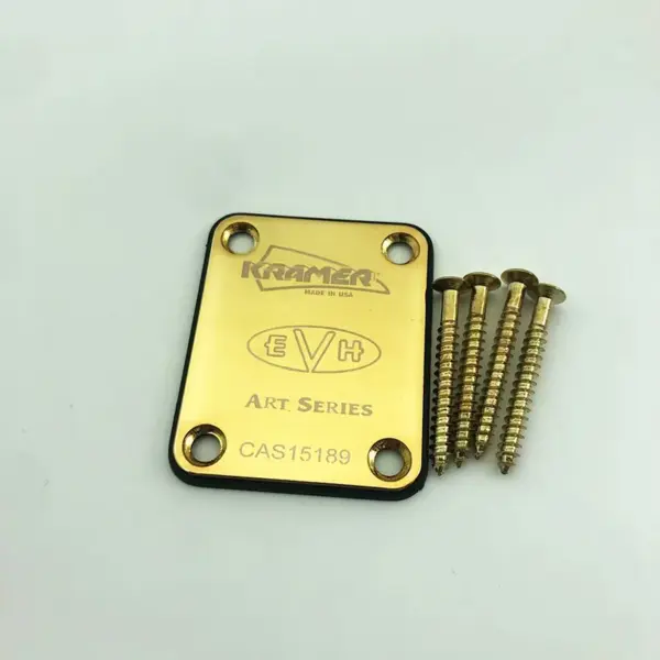 Experience your guitar's potential like never before with this Kramer EVH Guitar Neck Plate. Crafted using advanced laser engraving technology, the logo promises durability, resisting fading and rust over time. Tailored for uniqueness, the neck plate is compatible with various guitar models and adds a personalized touch to your instrument. Choose from three stunning finishes – gold, chrome, and black – to perfectly complement your guitar's aesthetic. Whether you're a performer or a collector, this neck plate is sure to enhance both style and functionality. Elevate your music experience by installing this exceptional piece on your guitar today!