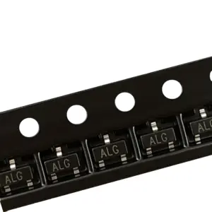 - Technical specs include: Package type SOT-23, maximum current 0.15A, voltage 50V, new condition, and dual markings ALG and ALY for easy visual verification.