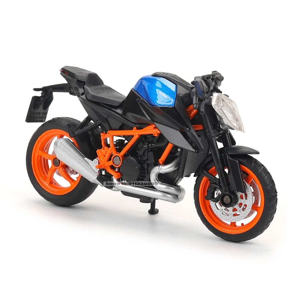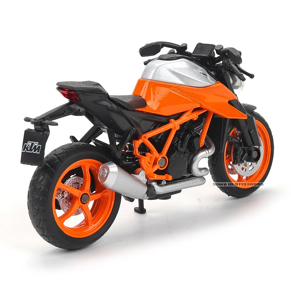 - Meticulously designed 1:18 scale motorcycle model radiates realism, with crisp contours and sculpted surfaces that mimic an actual KTM 1290 Super Duke for a true collector’s display.