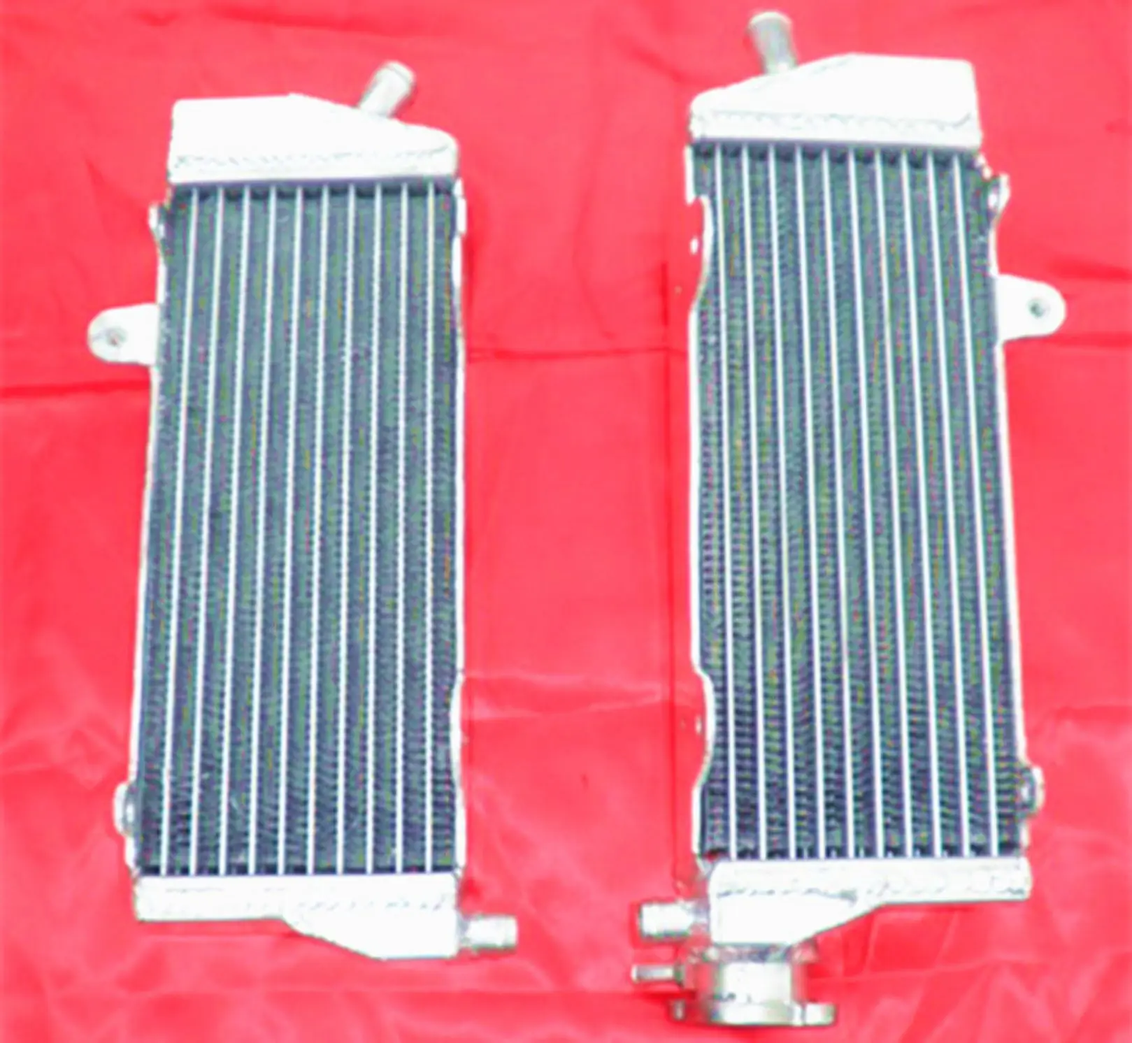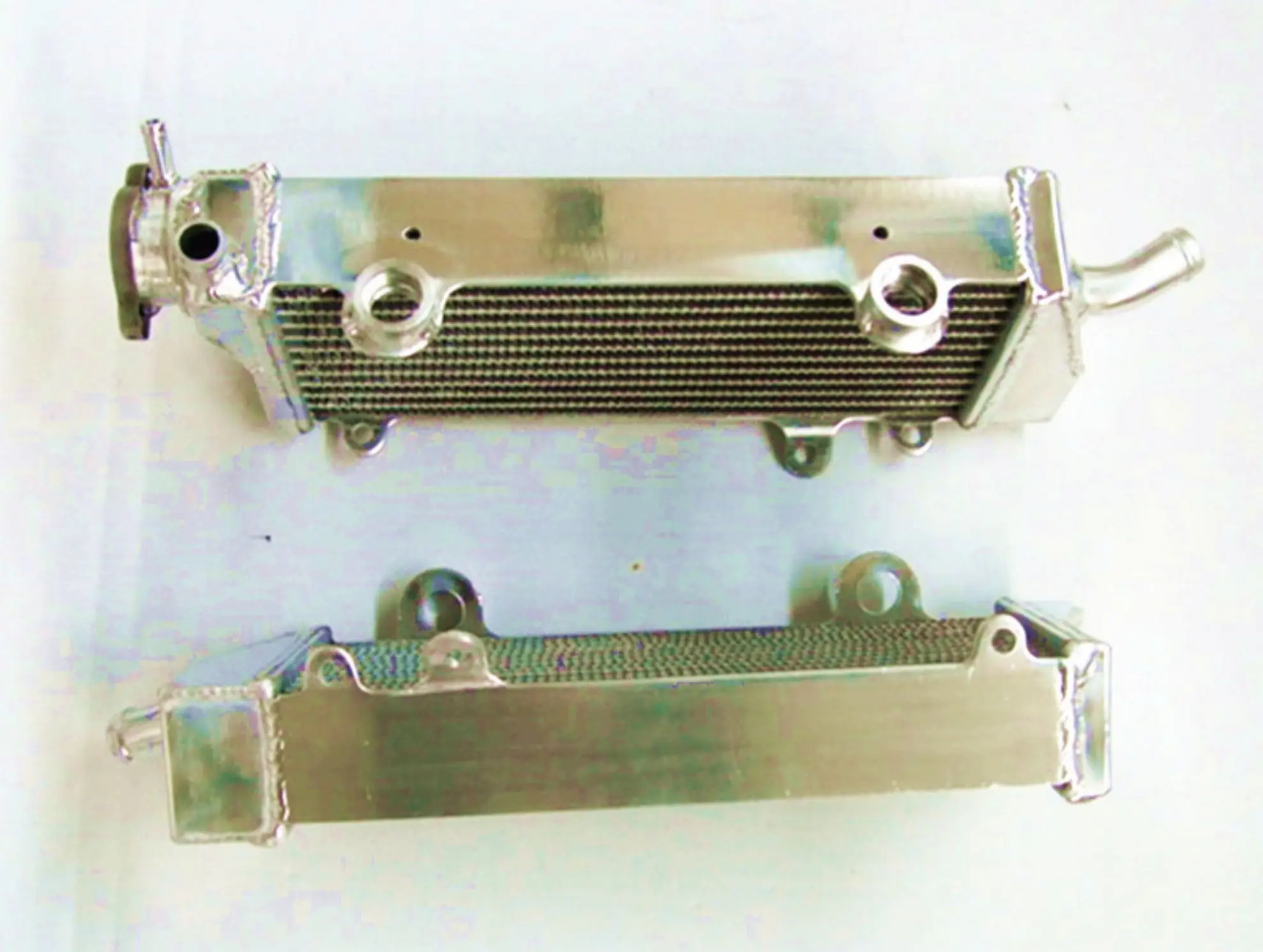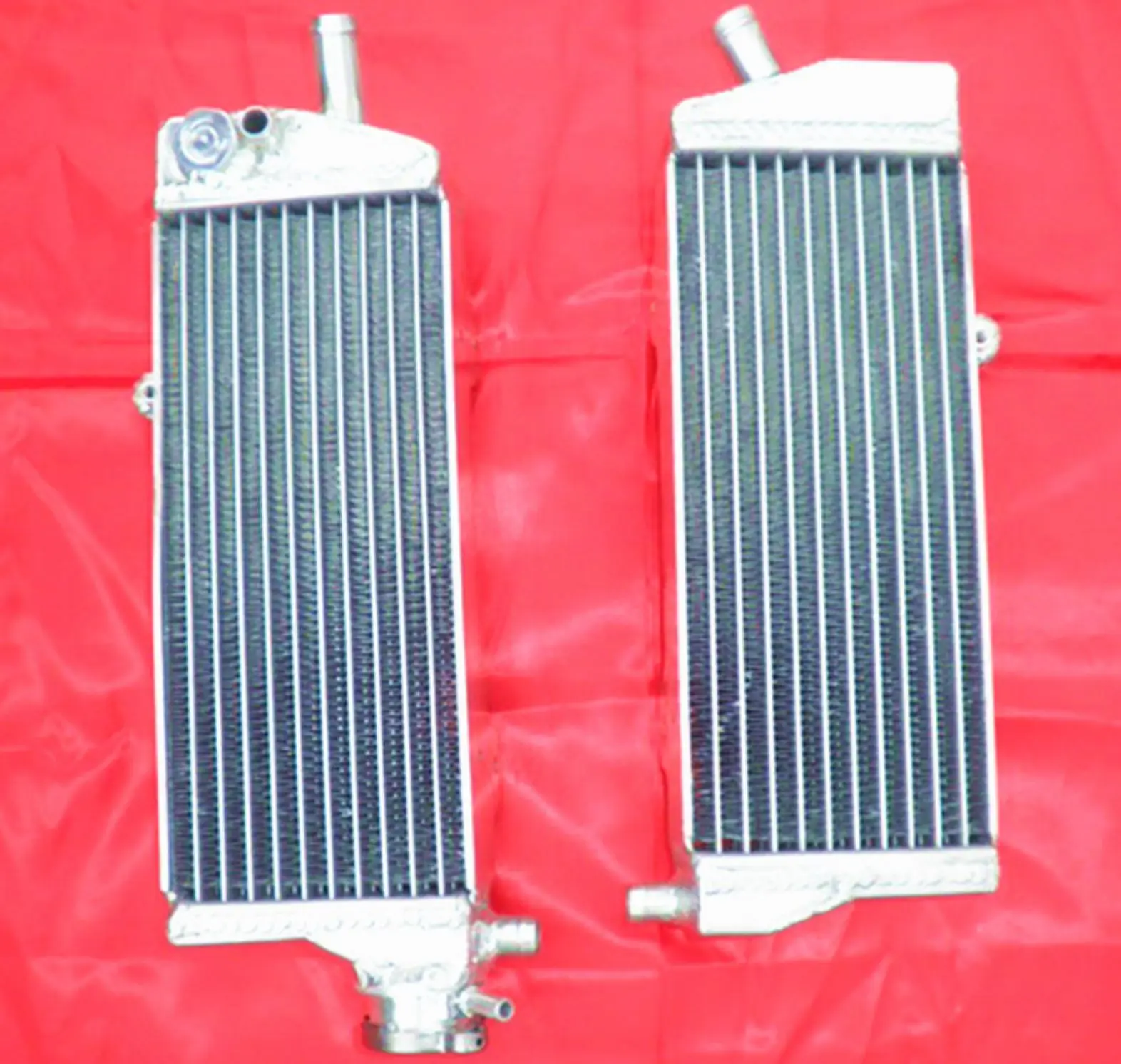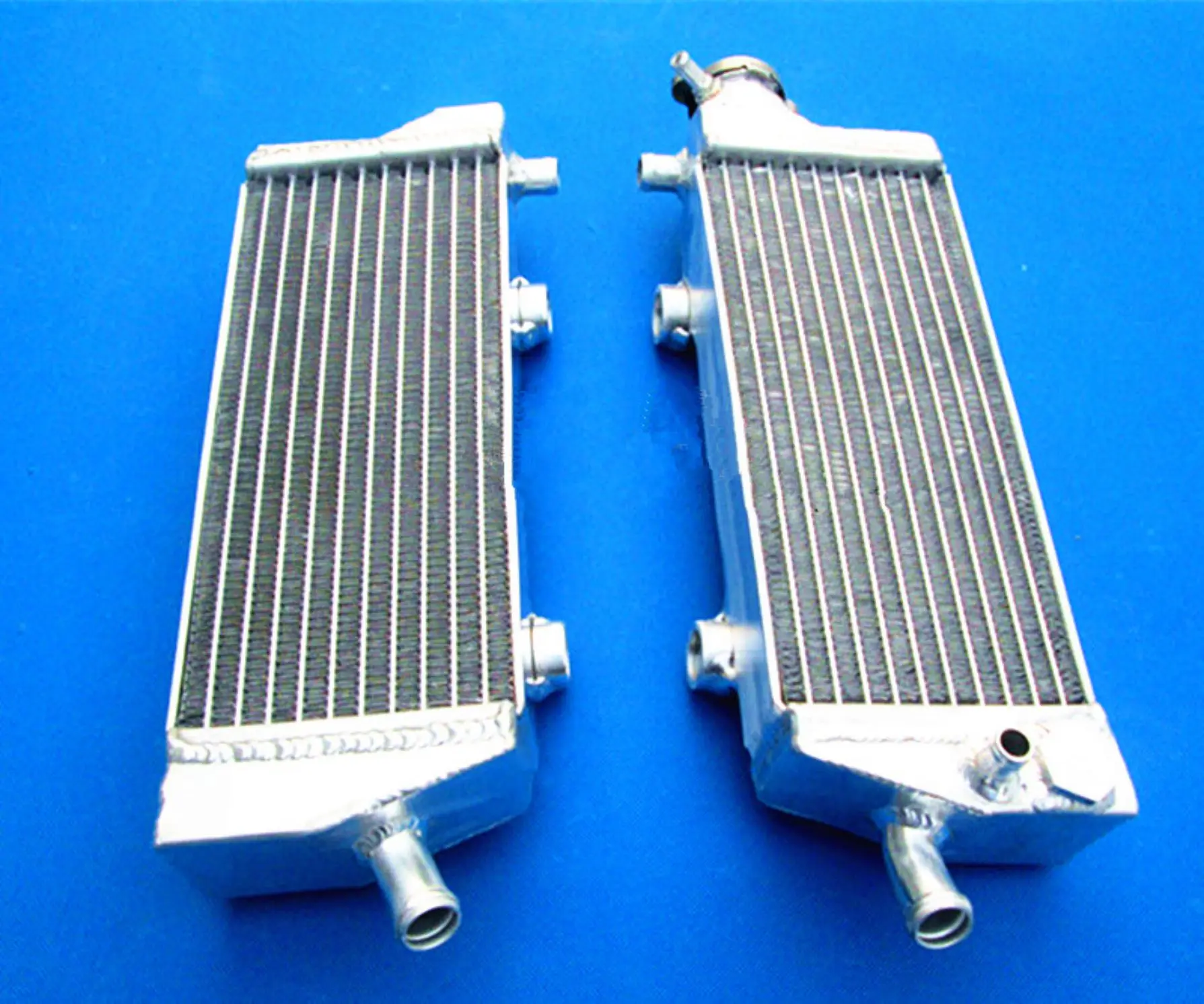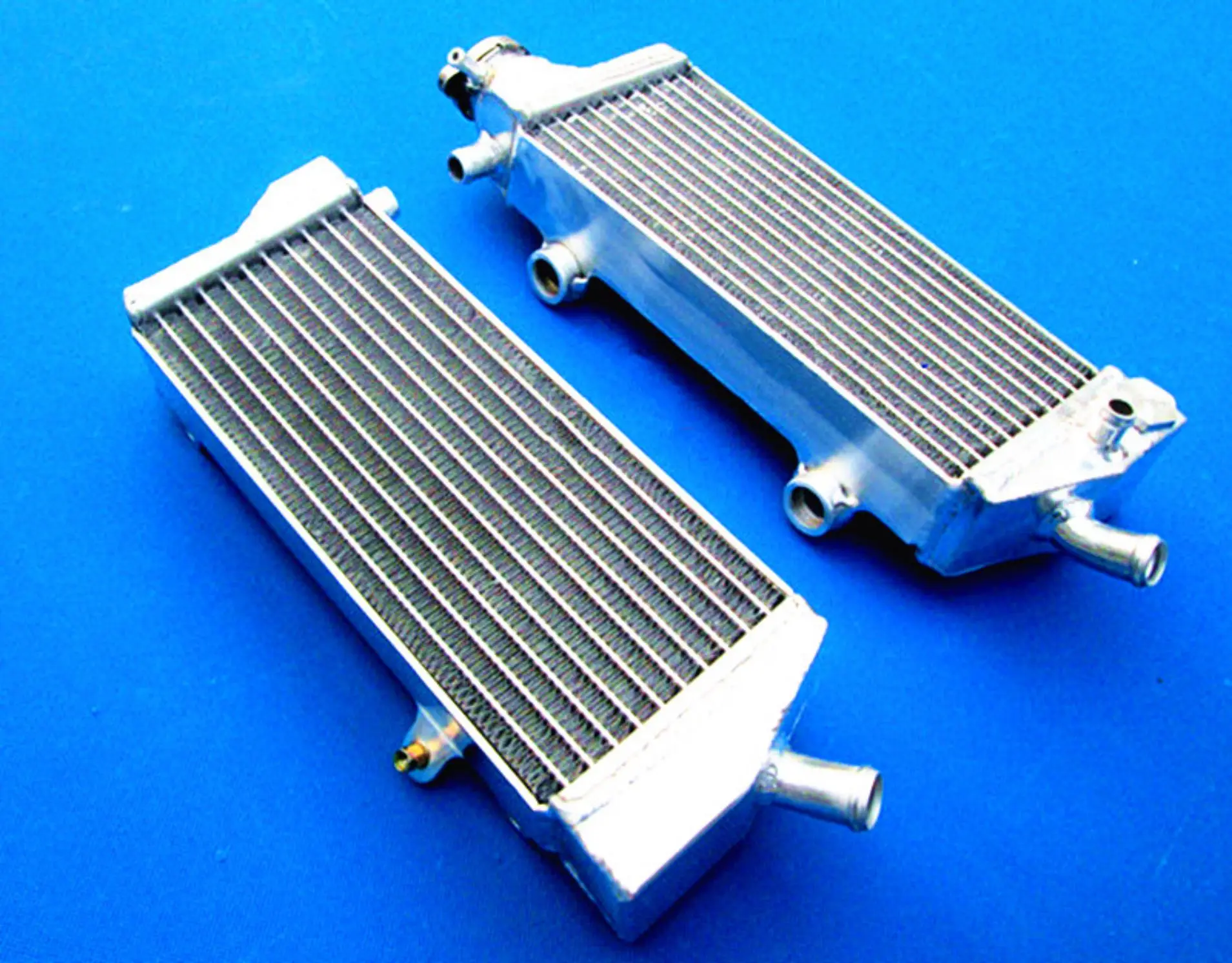 Enhance your KTM’s cooling system with this high-performance aluminum radiator set, compatible with models from 2008 to 2015, including 250, 350, 450, 500, and 530 EXC-F, EXC-R, XC-W, and XCF-W variants. Crafted from durable T-6061 aluminum, the set features a core vacuum-brazed for strength and tanks TIG-welded for durability, with no epoxy used. Each pair of radiators, designed for left and right installation, offers approximately 40% increased cooling capacity over standard OEM radiators, ensuring reliable performance under demanding conditions. Their sleek, lightweight, heavy-duty construction combines technical excellence with an industrial aesthetic, ideal for serious riders seeking superior heat dissipation.