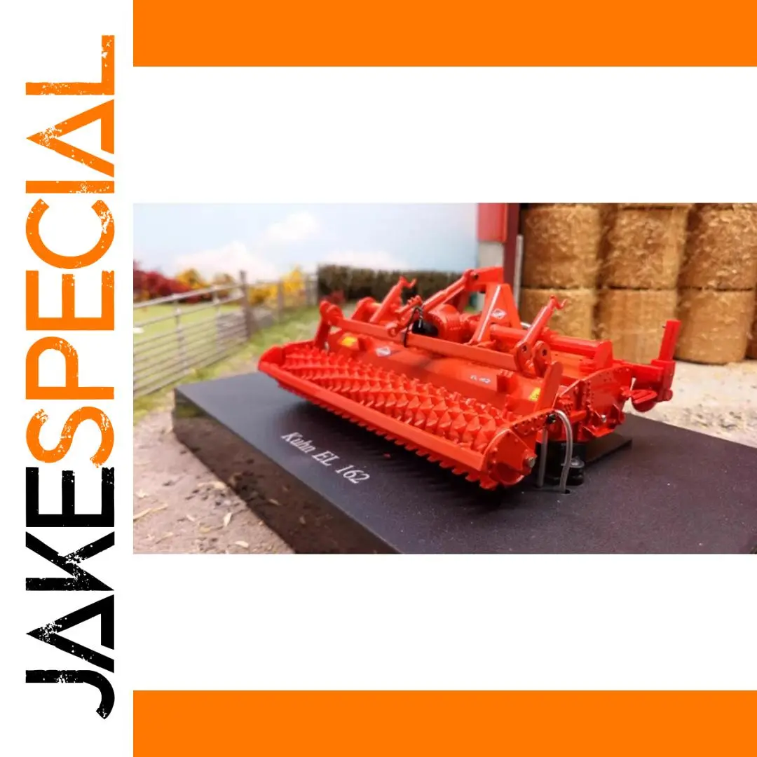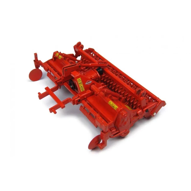 This detailed diecast alloy model of the Kuhn EL 162 reclamation machine, scaled at 1:32 and measuring 11 x 6 x 6 cm, features a vibrant red color with realistic mechanical details, including a textured rotating drum with raised spikes, articulated arms, levers, and black hydraulic hoses that contrast sharply against the red body. Crafted from durable metal alloy, it is designed for static display, making it an ideal collector’s piece, office decor, or thoughtful gift. Its compact size and intricate design reflect industrial precision, capturing the robust construction and complex features of the original machinery, perfect for enthusiasts aged 14 and older.