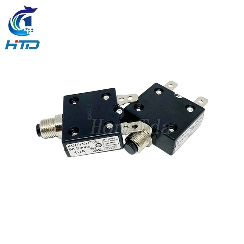 Experience reliable electrical protection with this compact and robust manual reset overload breaker from the KUOYUH 98 Series. Designed for versatility, it suits small household appliances, low-power generators, air compressors, cars, electric vehicles, electric tools, extension cables, and transformers. Its sturdy black rectangular body exudes a minimalist industrial style, contrasted by a pristine white label that details technical specifications clearly. The shiny, silver-colored metal threaded bushing and terminals add a polished, durable touch, emphasizing high-quality craftsmanship. Easy to install and built for longevity, this breaker ensures your electrical circuits remain safe from overloads. Perfect for professionals and DIY enthusiasts, this unit combines functionality with a sleek, utilitarian aesthetic to confidently protect your electrical investments.
