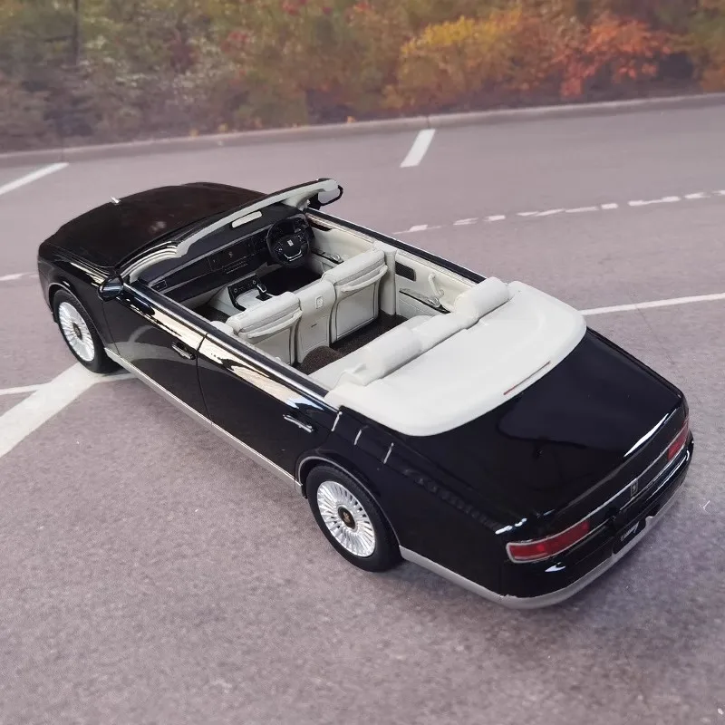 Step into the world of automotive elegance with this meticulously crafted KYOSHO 1:18 scale resin model of the Century GRMN. Measuring approximately 27 cm long, 11.5 cm wide, and 8.5 cm high, this highly detailed replica captures the sleek curves and commanding presence of the original. The glossy black exterior reflects light beautifully, accentuated by chrome and silver elements that highlight its luxury appeal. The large chrome-accented grille, with vertical slats, combined with clear rectangular headlights, adds realism and sophistication. With the convertible top down, you can admire the finely detailed, light-colored interior. Designed for static display, this model offers a true-to-life representation that will elevate any collection.