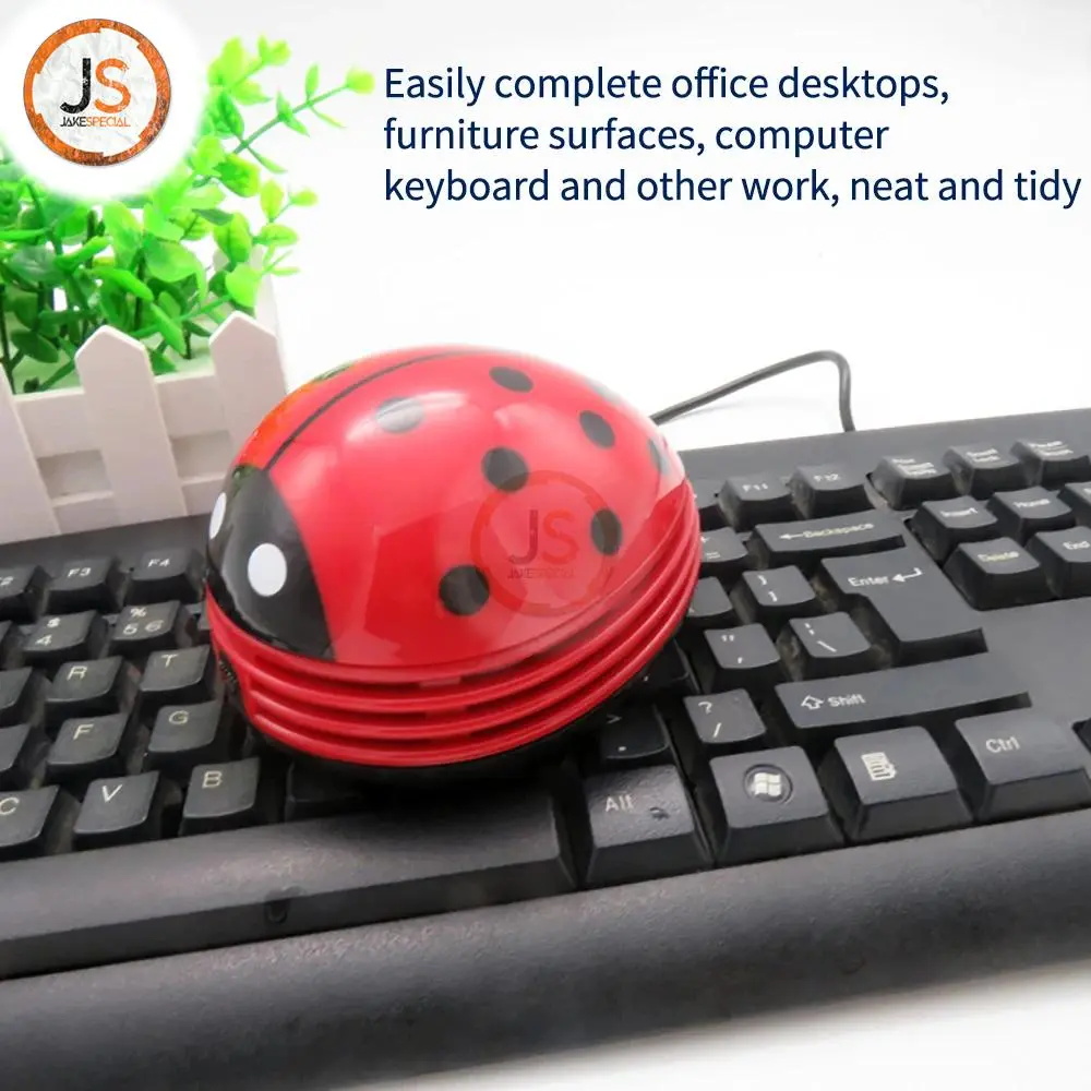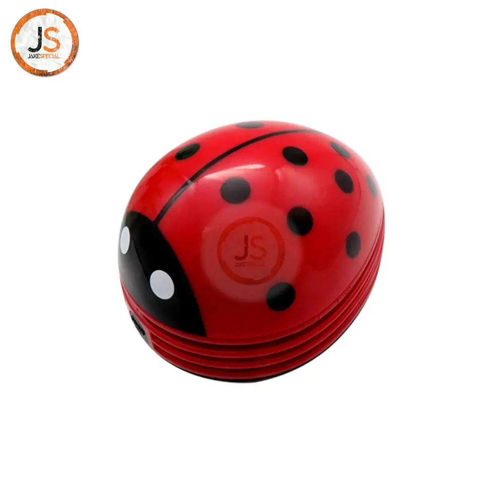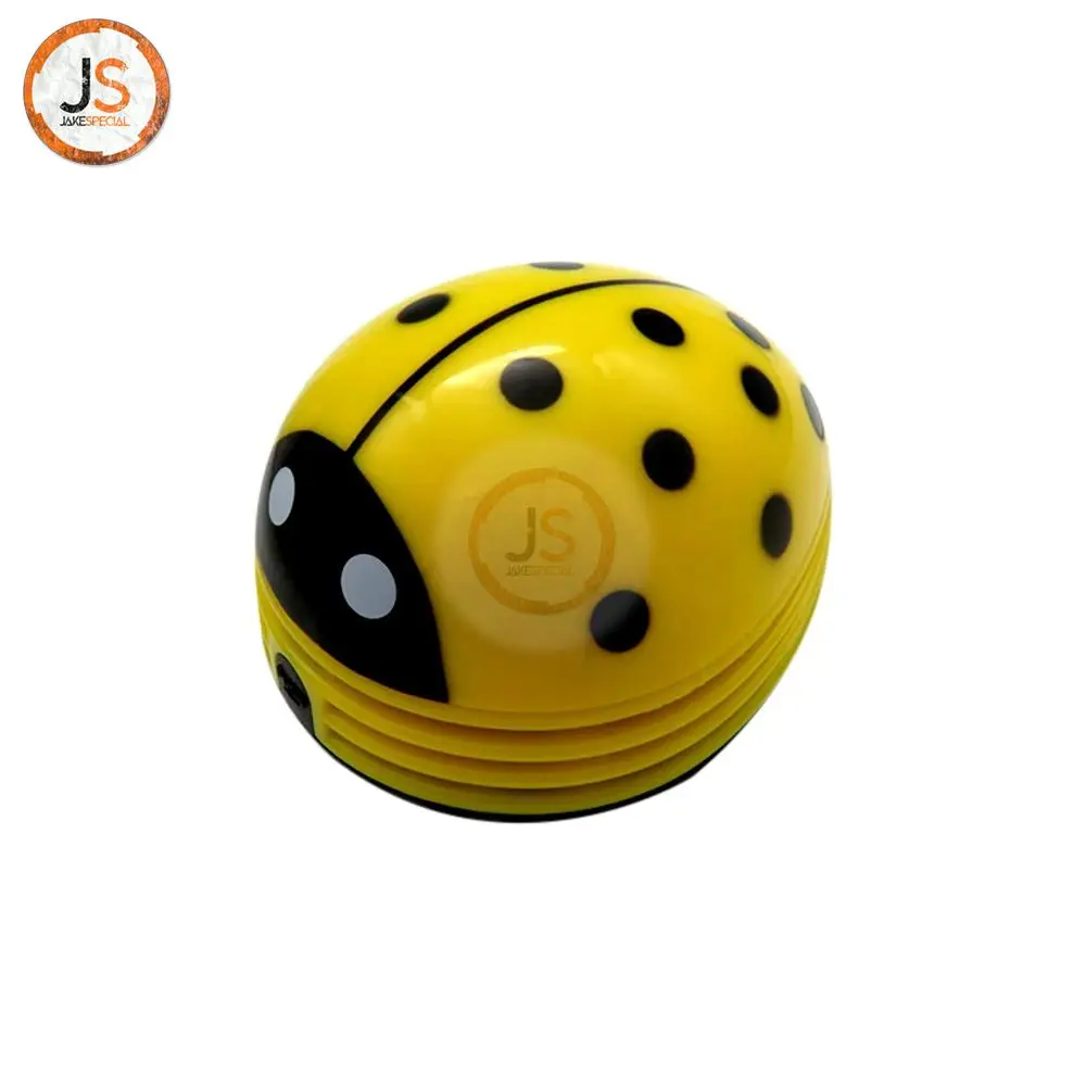 Introducing the Beetle Vacuum Cleaner, a portable tabletop vacuum designed for efficient desktop cleaning. Available in vibrant yellow with black polka dots, bright red, and a solid green option, this charming ladybug-inspired cleaner is perfect for collecting dust and crumbs from coffee and other debris. Its rounded dome-like shape features horizontal ribbing for added visual appeal, while the flat base ensures stability on your desk. With a central suction opening and ridges for enhanced performance, this vacuum cleaner is ideal for both home and office use. Please note, battery is not included for operation.