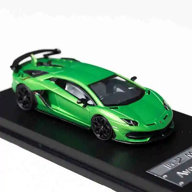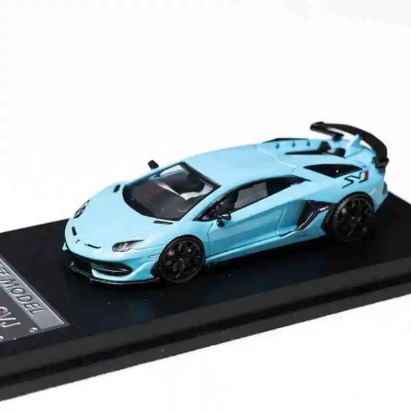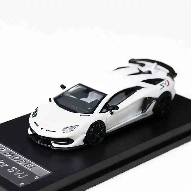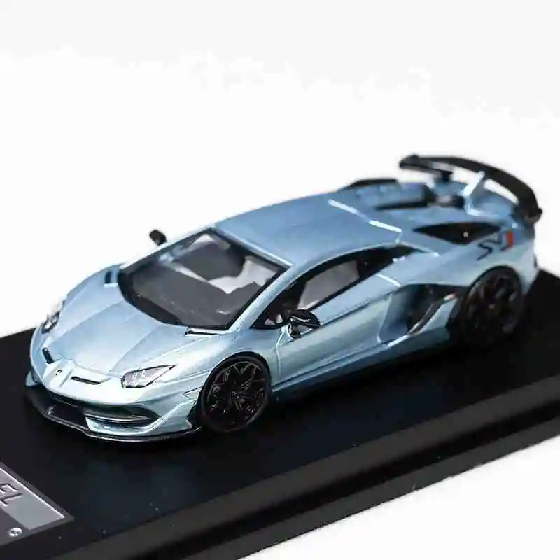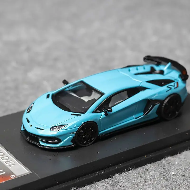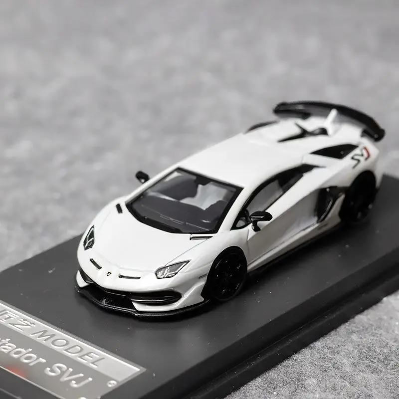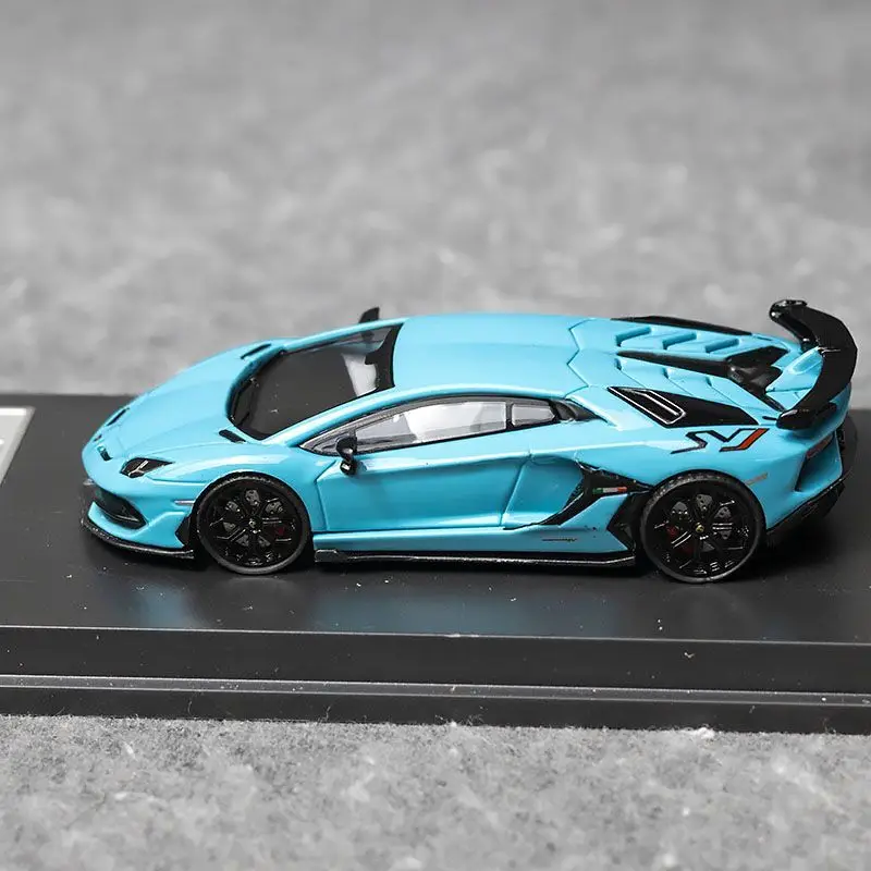 The MJ 1/64 scale diecast model of the Lamborghini Aventador SVJ LP770-4 features four visually stunning color variants: vibrant green with black accents, metallic blue, shiny light blue, and sleek white. Each model measures approximately 7 cm in length and is crafted from a combination of alloy and plastic, providing durability while maintaining a lightweight quality. Detailed design elements such as an intricately designed front bumper, prominent air intakes, aggressive rear wing, and sporty black wheels enhance their aesthetic appeal. The transparent windows reveal finely detailed interiors, accurately reflecting the real Aventador’s sleek lines and features.