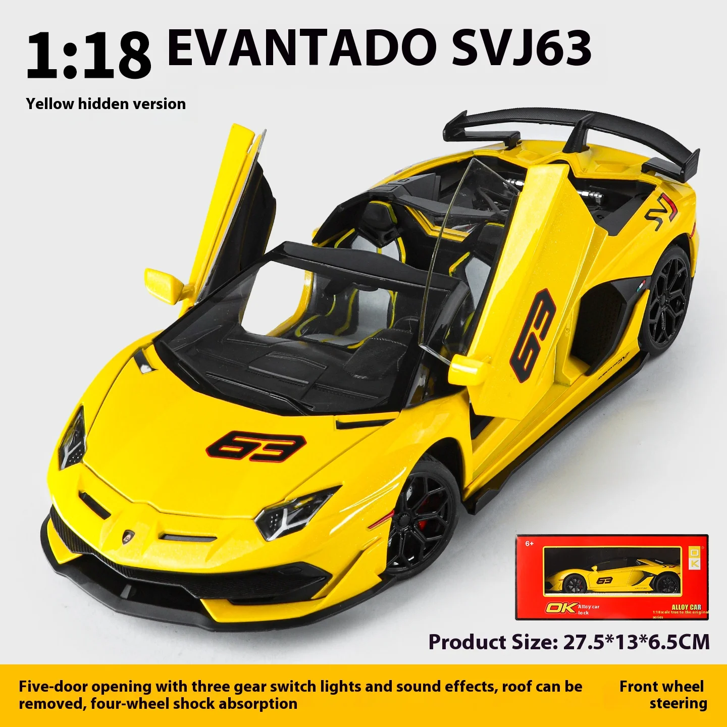 This large 1:18 scale diecast model of the Lamborghini Aventador SVJ supercar is a must-have for any serious collector. Presented in an eye-catching yellow, the model emphasizes the sleek and aerodynamic design, complete with intricate details that mirror the real vehicle. Articulated doors open to reveal a meticulously crafted black interior featuring a detailed dashboard, steering wheel, and luxurious accents. The sporty exterior showcases expertly designed headlights and a striking front grille, all of which enhance its aggressive stance. Crafted from quality metal, this model not only looks stunning but also feels substantial and authentic, making it a perfect centerpiece for display or a remarkable gift for enthusiasts.
