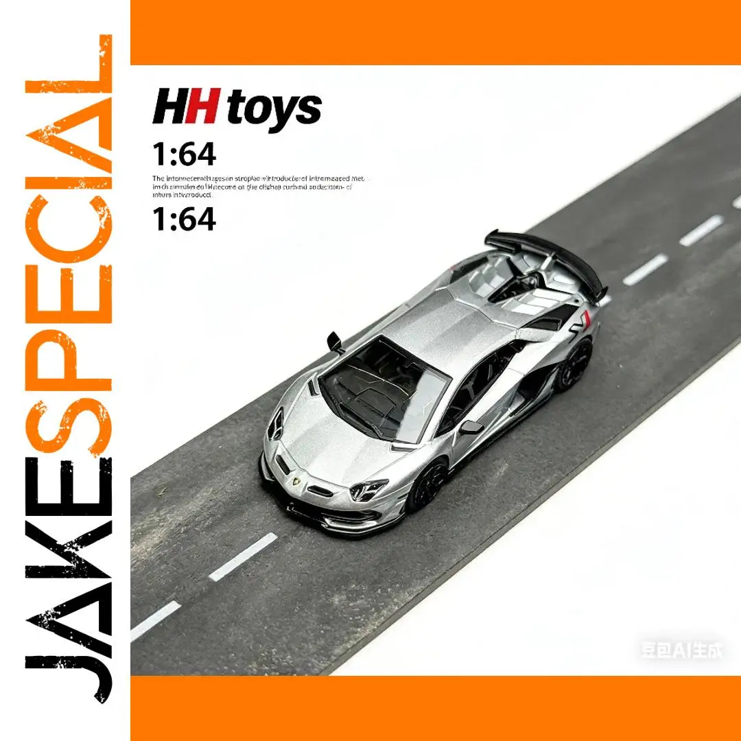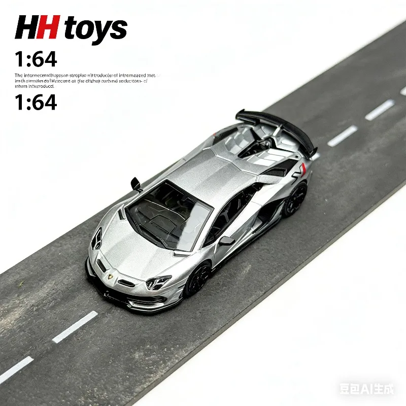 Experience the thrill of owning a meticulously crafted miniature of the iconic Lamborghini Aventador SVJ with this 1:64 scale model from HH Toys. Crafted with a sleek, metallic silver alloy body, this collectible replica features a glossy, smooth finish that mimics the real vehicle’s luxurious paintwork. Its sharp, angular contours and sculpted details highlight aerodynamic finesse and speed, bringing the supercar's aggressive design to life at a compact size. The model’s transparent windows reveal a detailed interior made of ABS plastic, adding realism and depth. With soft rubber tires mounted on gloss black rims, every element emphasizes quality and attention to detail. Ideal for display, this piece combines elegance and sportiness in a perfect miniature form of one of Lamborghini’s most celebrated models.