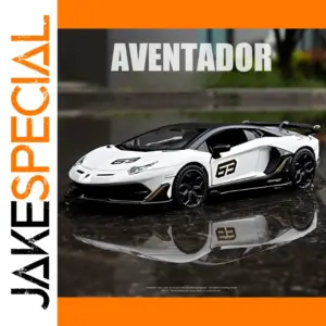 Step into the world of high-speed thrill with this stunning 1:24 scale diecast model of the Aventador SVJ 63. Crafted from durable alloy and high-quality plastic, this model captures every sleek curve and aggressive detail of the original sports car. Its pristine white body is beautifully contrasted with black accents, including the roof, side mirrors, and side panels, which add a sporty and modern edge. The detailed front features sharp, angular headlights and large air intakes, evoking the car’s racing heritage. The rear showcases a bold black rear wing spoiler, taillights, and exhaust outlets, emphasizing its aerodynamic prowess. With sound and light features, this collector’s piece stands out on display, offering both visual appeal and engaging details. Perfect for enthusiasts seeking realism and craftsmanship.