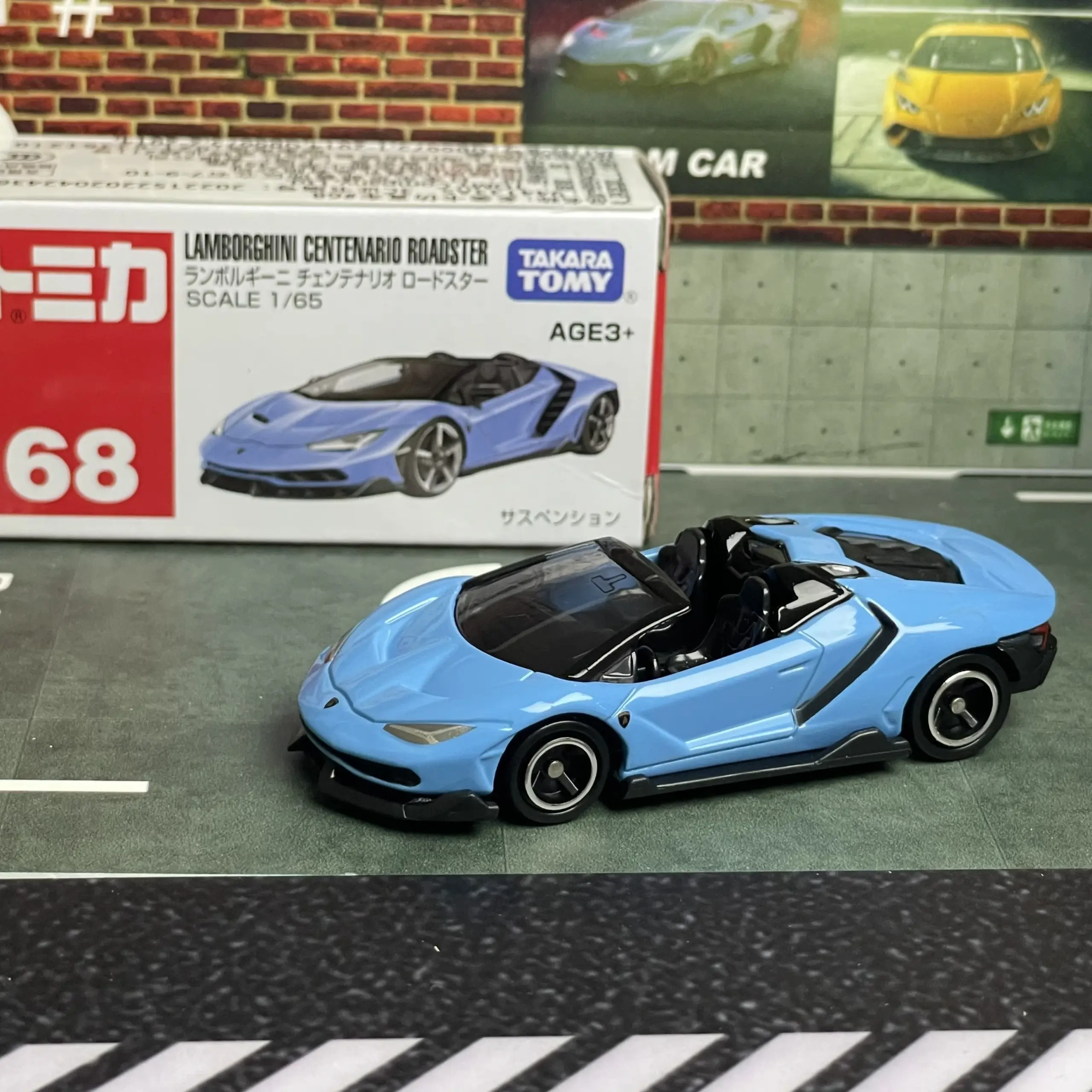 This highly detailed 1:64 scale diecast alloy model showcases the Lamborghini Centenario Roadster in a sleek light blue color, designated as NO.68. Crafted from durable metal with no chemical hazards, it features realistic design elements such as smooth curved lines, front headlights, side air vents, and a convertible roof. The metallic multi-spoke wheels contrast perfectly with the black tires, while translucent windows reveal a meticulously detailed interior. Perfect for display and collection, this model does not require batteries and is suitable for enthusiasts aged 14 and above. Made in Vietnam, it complies with CE standards, offering a true-to-life miniature replica of this iconic supercar.