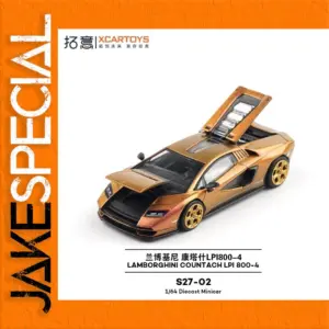 Experience the thrill of owning a meticulously crafted miniature of the Lamborghini Countach LPI 800-4 with this detailed diecast model. Designed for collectors and car enthusiasts, this 1:64 scale replica captures the iconic wedge-shaped profile, sharp angular lines, and aerodynamic details that define the original sports car. Its luxurious metallic bronze or copper finish, paired with contrasting black accents on the hood edges, windshield, and side mirrors, enhances its visual appeal. Gold-colored multi-spoke wheels and the partly opened rear wing showcase exquisite craftsmanship. Whether displayed on your shelf or as a bright centerpiece, this static model promises to bring a touch of high-performance elegance and precision detail into your collection.