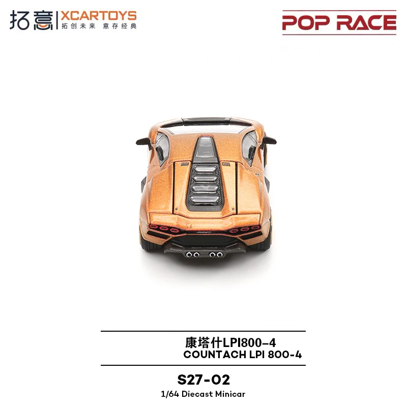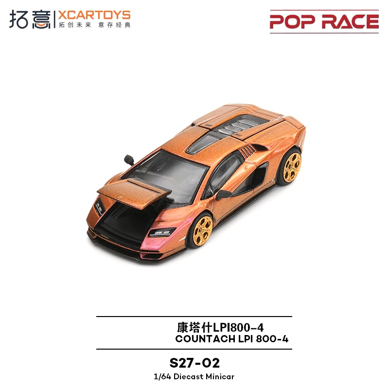 Experience the thrill of owning a meticulously crafted miniature of the legendary Lamborghini Countach LPI800-4. This 1:64 scale diecast model captures every detail of the original, from sharp angular lines to the sleek, aerodynamic profile. Its metallic copper-bronze hue (color code S27-02) with a subtle glossy finish radiates sophistication and high-performance aesthetics. The model features realistic black side mirrors, detailed five-spoke gold wheels with low-profile tires, and prominent black accents on the side air intakes. The rear showcases a detailed engine cover with transparent panels, revealing the intricate engine bay beneath. This model is a perfect collectible for enthusiasts and is built with a sturdy metal construction for durability and precise craftsmanship, perfect for display in a collection or diorama setup.