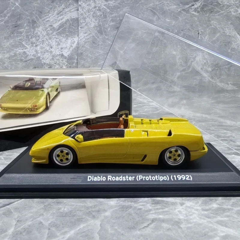 Experience the thrill of owning this meticulously crafted diecast model of the Lamborghini Diablo Roadster Prototipo 1992. This vibrant yellow scaled replica captures every detail of the iconic sports car, from its sleek, aerodynamic body to its sporty interior. Made from durable alloy and plastic materials, it offers an authentic appearance with a low, wide stance and sculpted lines that evoke speed and performance. The model's detailed wheels, engine vents, and inside stitching bring it to life, perfect for display or as a collector’s item. Measuring at 1:43 scale, it’s a stunning representation of automotive design that will enhance any collection. With its original retail box and certified safety standards, this model is a must-have for enthusiasts who appreciate craftsmanship and style.