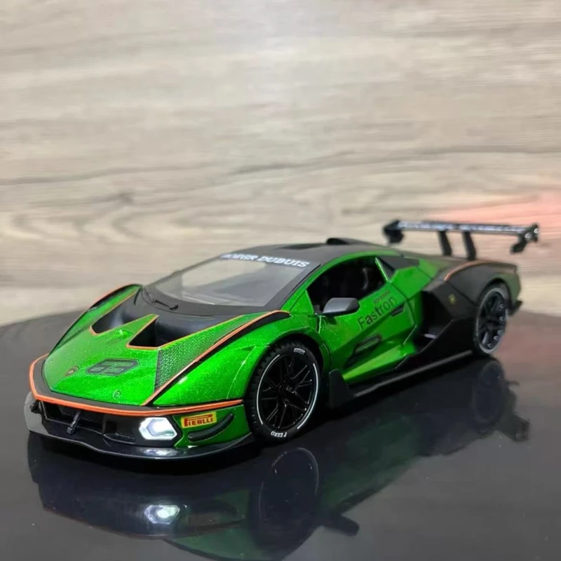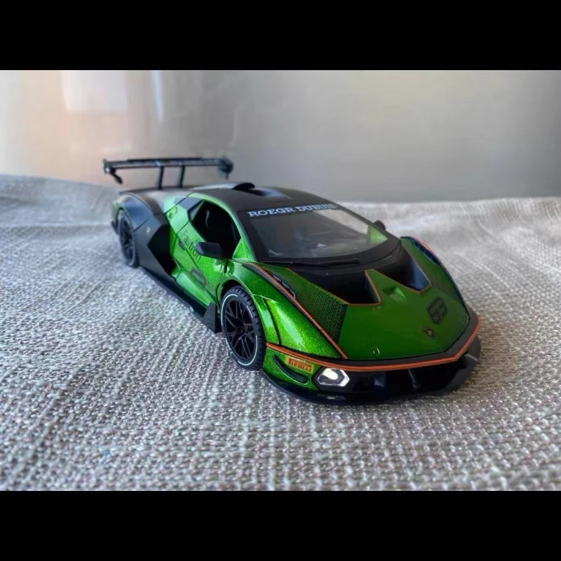 The Lamborghini Essenza SCV12 diecast model is an exceptional piece for collectors, showcasing an exquisite vibrant green finish with a metallic sheen. This high-quality model, designed at a 1:24 scale, captures the unmistakable aerodynamic lines and sporty aesthetics of the iconic racing car. With intricate detailing, including a rear spoiler and fierce headlights, this replica invites you to appreciate its craftsmanship. To enhance your interaction, the model features realistic sound and light effects, ensuring your collection stands out. Perfect as a gift or a standout display piece, it embodies the essence of high-performance engineering and design, making it a beloved addition to any automotive enthusiast's collection.