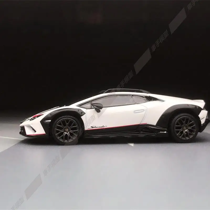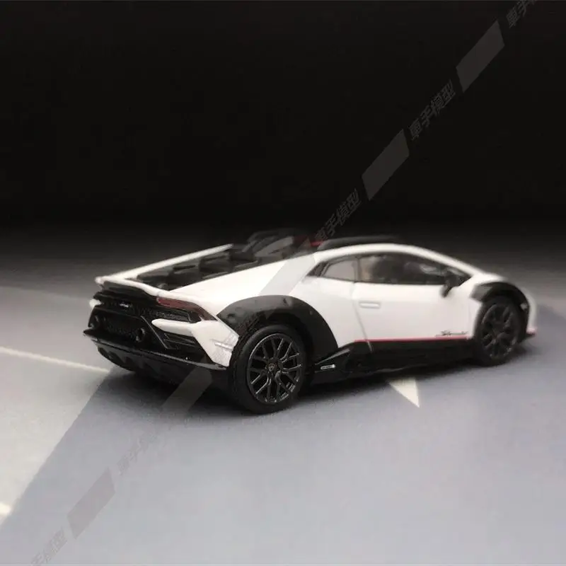 Experience the sleek elegance of the Lamborghini Huracan Sterrato in a stunning 1:64 scale die-cast model by MINI GT. This exquisite replica measures approximately 7 cm, showcasing a striking white body paired with bold black accents. The die-cast model is crafted from high-quality alloy, designed with intricate details such as pointed headlights, a unique grille, and pronounced curves that highlight the sporty aesthetic of this iconic car. With its matte black roof and stylish five-spoke wheels, this model captures everything you love about Lamborghini's design. Ideal for collectors and enthusiasts alike, it serves as a perfect ornament or thoughtful gift, suited for ages 14 and above.
