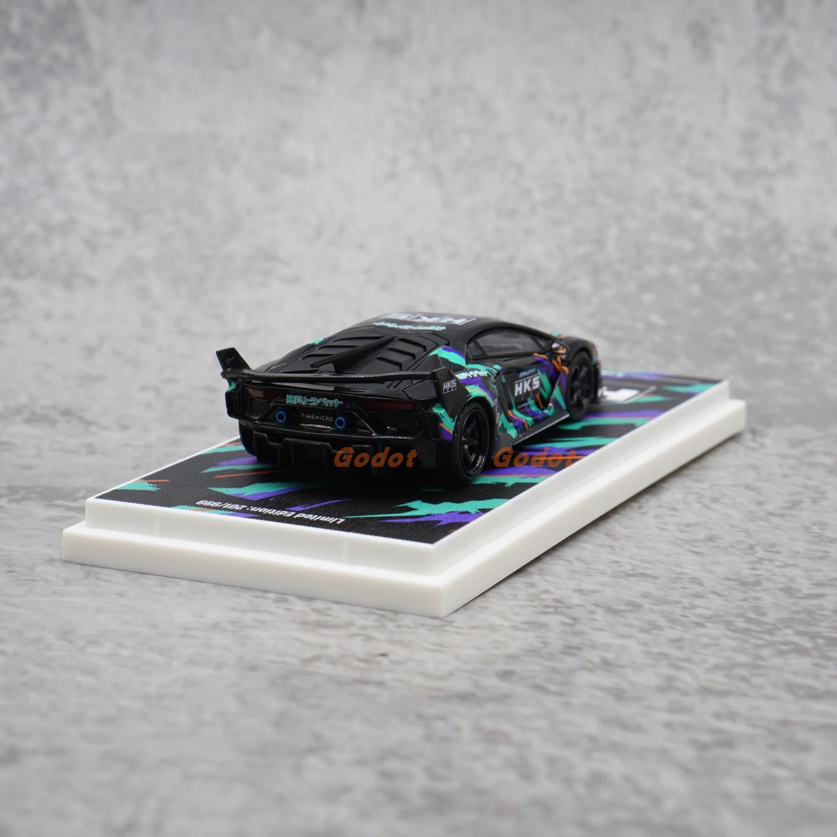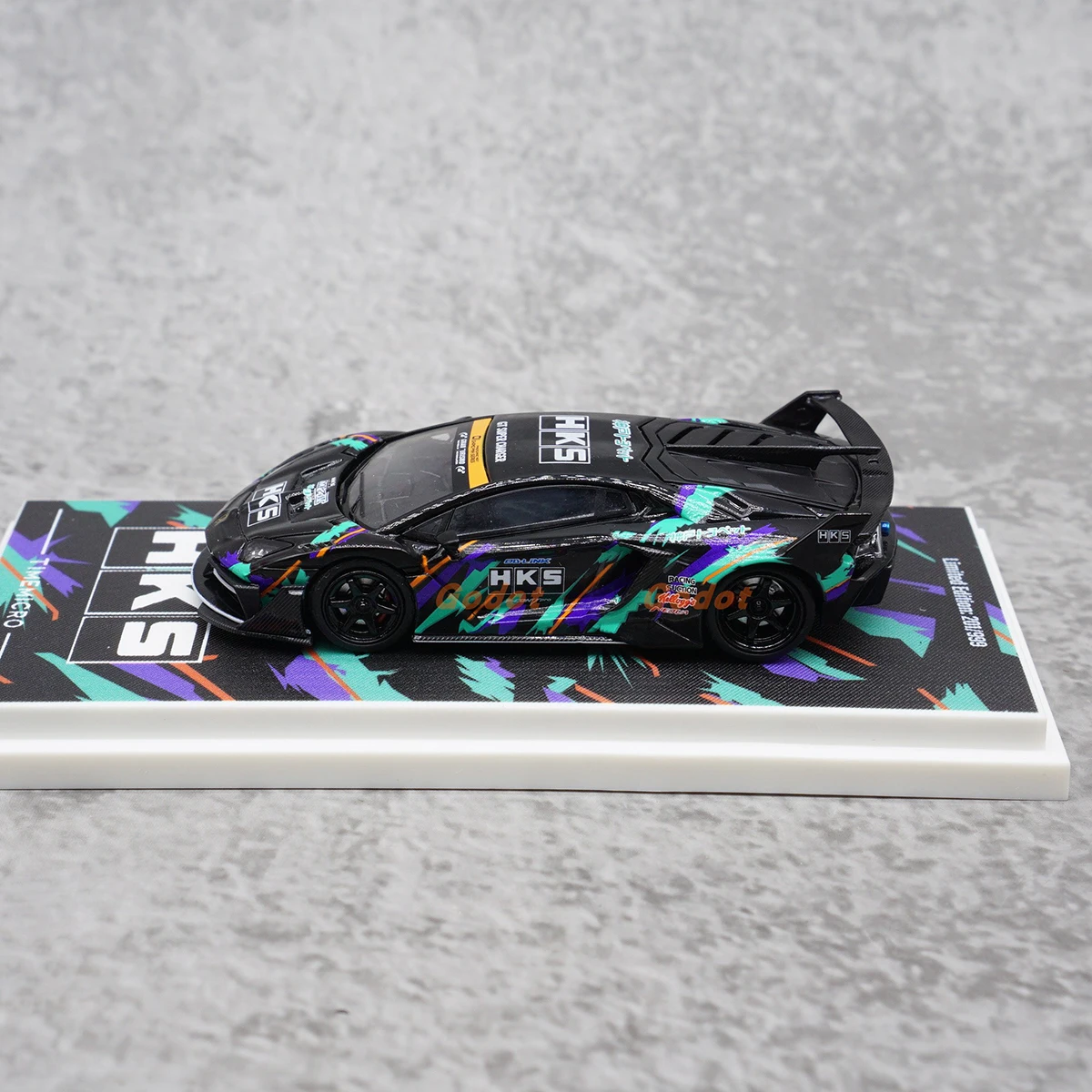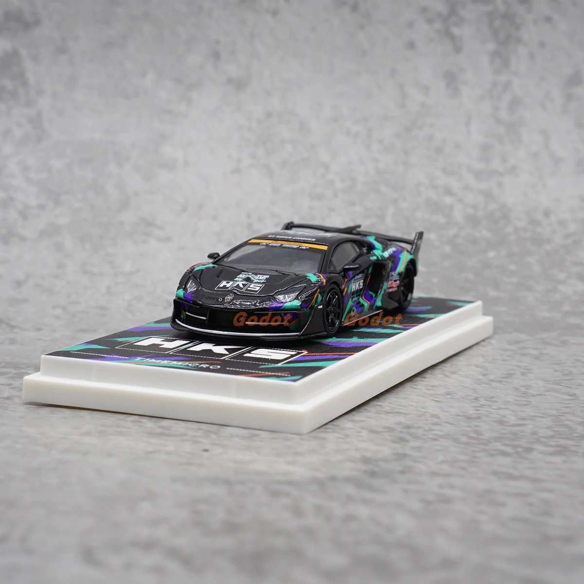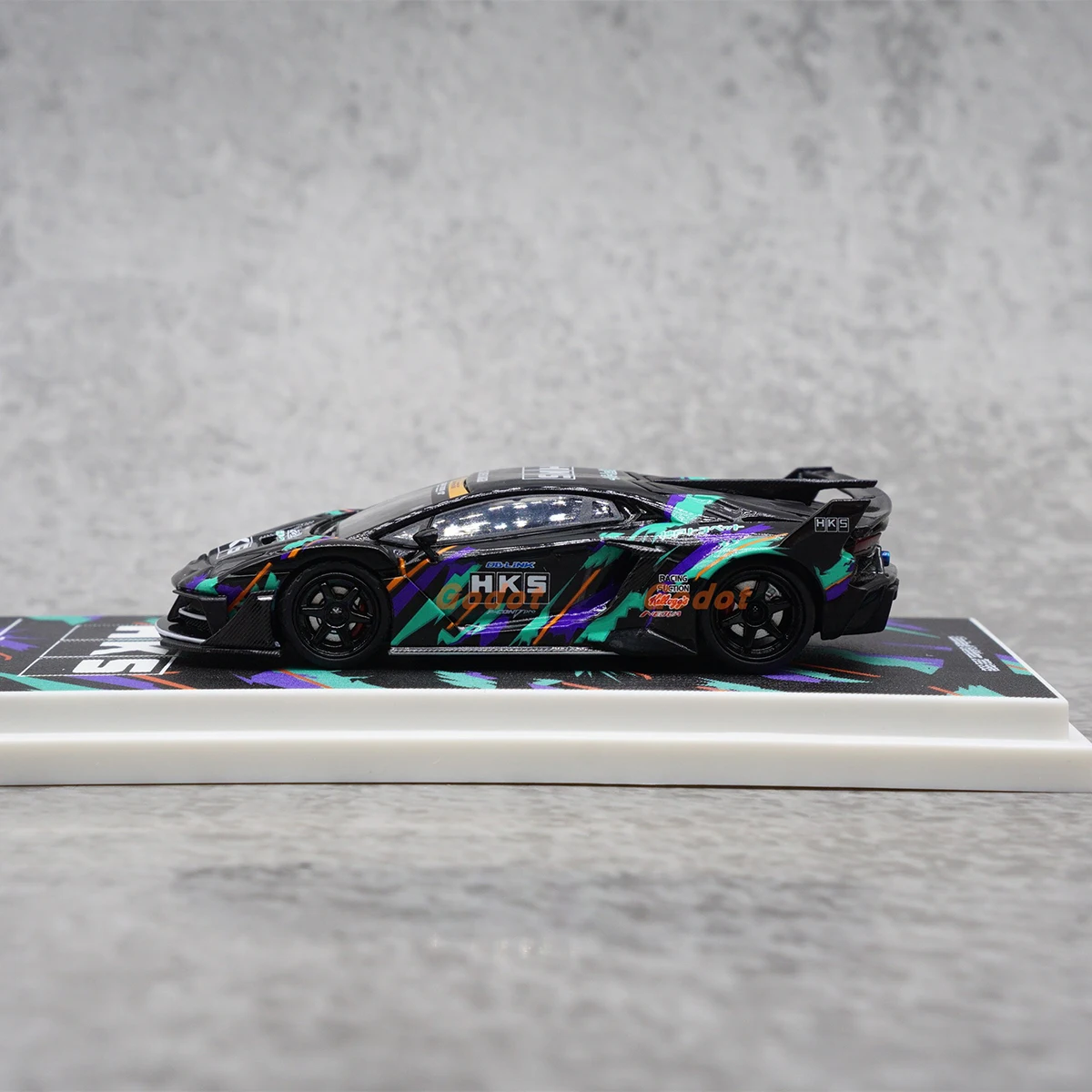 Experience the thrill of owning this meticulously crafted 1:64 scale diecast alloy model of the Lamborghini LP700 Aventador. Featuring a stunning glossy black finish complemented by vibrant, multicolored racing decals on the sides, hood, and roof, this miniature exudes speed and style. Its aerodynamic contours and sharp front angles are captured with precise detailing, making it a striking addition to any collection. The transparent windows reveal a detailed interior, while the black, multi-spoke wheels with low-profile tires reflect the high-performance essence of the original vehicle. Crafted from durable alloy and ABS plastic, this static display model is perfect for passionate collectors seeking a realistic and energetic miniature of this iconic supercar.