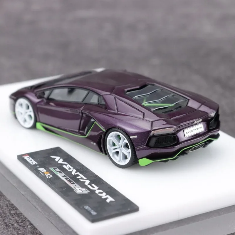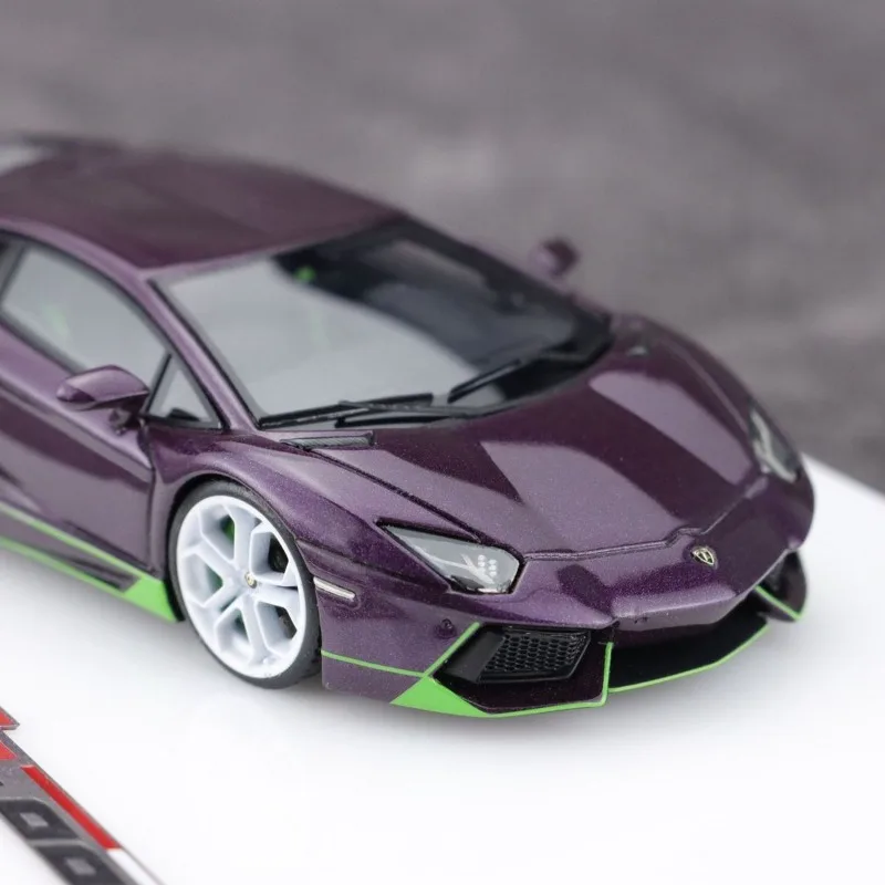 Experience the thrill of owning a meticulously crafted 1:64 scale diecast model of the iconic Lamborghini LP700 series, brought to life by Takara Tomy. These intricately designed models highlight sleek, aerodynamic profiles with sharp angles and aggressive stances. The white version boasts a glossy finish, vivid blue multi-spoke wheels, and detailed body lines, vents, and side intakes, perfectly mimicking the real vehicle’s high-performance styling. The purple variant exudes boldness, featuring a glossy surface accented by neon green highlights along the lower sides, front splitter, and wheel arches, complemented by white multi-spoke wheels. Both models are made from durable metal, emphasizing realism and collector value, perfect for display and admiration.
