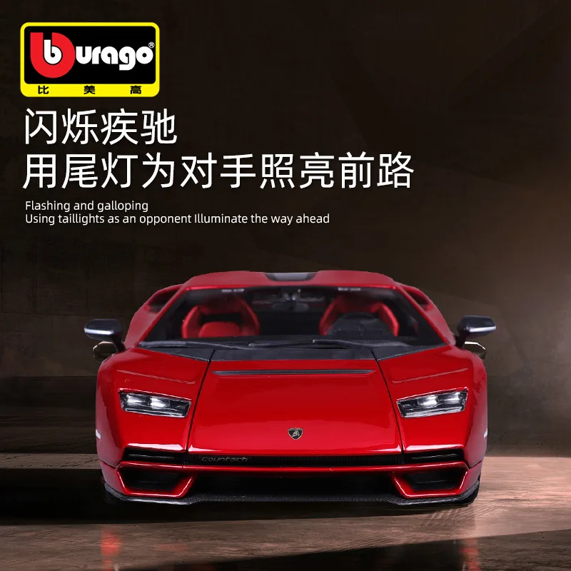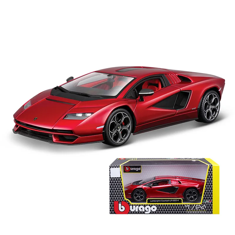 Experience the dynamic design of the Lamborghini LPI 800-4 with this detailed 1:24 scale diecast model car. Crafted from high-quality metal, this vibrant red toy captures the sleek, aerodynamic lines, sharp angular contours, and distinctive gull-wing windows of the original vehicle. Featuring black multi-spoke rims with silver accents, reflective chrome side mirrors, and finely sculpted body details like door lines and side vents, it offers a realistic and premium aesthetic. Perfect for collectors and enthusiasts over 14 years old, this non-electric, battery-free display piece embodies precision craftsmanship and modern style, making it an impactful addition to any collection or display.