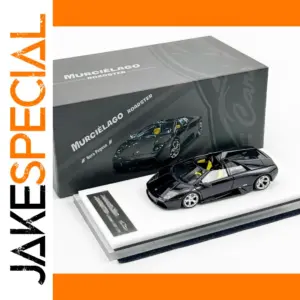 This highly detailed 1:64 scale resin model of the Lamborghini Murcielago Batcar captures the iconic, aggressive design with a glossy black finish, clear windows revealing a yellow interior, and silver alloy-style wheels with black tires. Featuring finely molded body lines, low sporty stance, subtle rear spoilers, and matte black exhaust outlets, it exudes high-performance luxury and exotic styling. This finished collectible is perfect for decoration and collection, measuring approximately 1.64 times smaller than the real vehicle. Note that it is fragile, non-motorized, and intended solely for display by adult enthusiasts, with self-gluing recommended if parts detach.