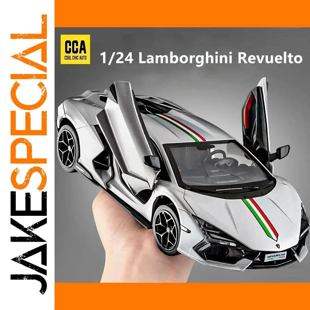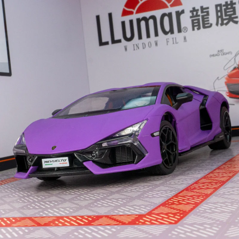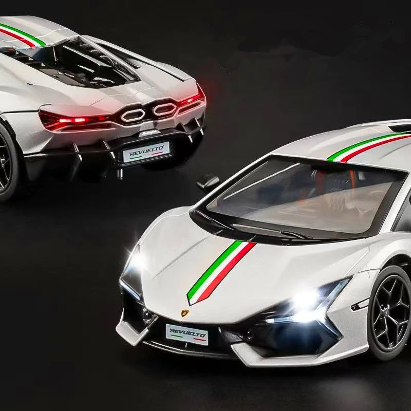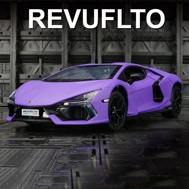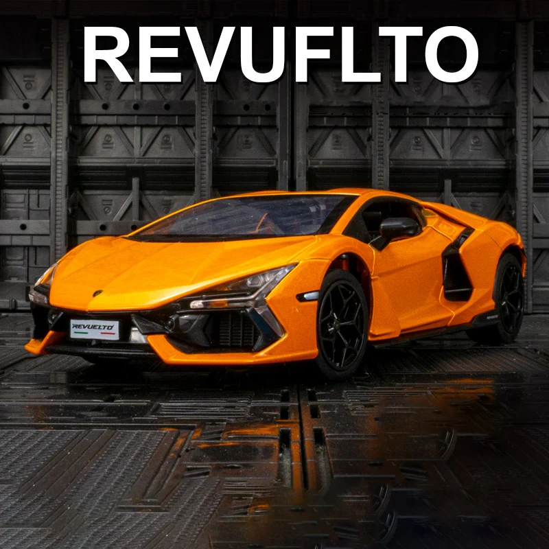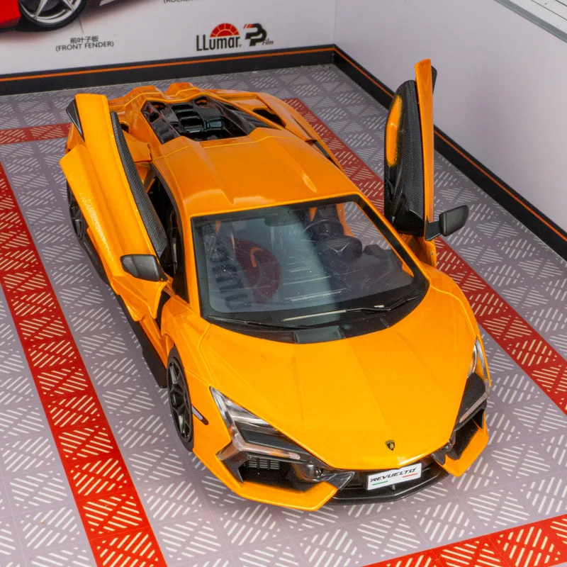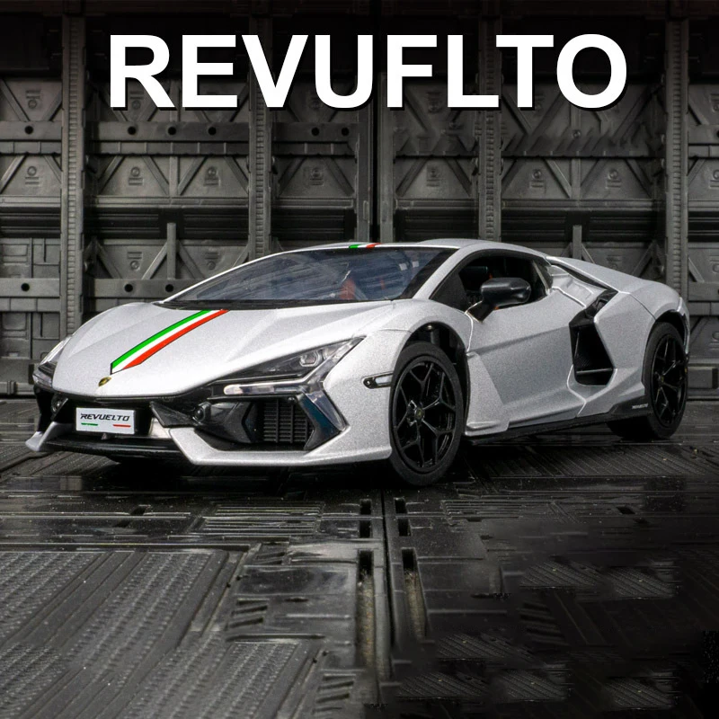 - This 1:24 scale diecast model is made from alloy and plastic, providing a lightweight but sturdy structure with realistic details matching the original Lamborghini Revuelto design.