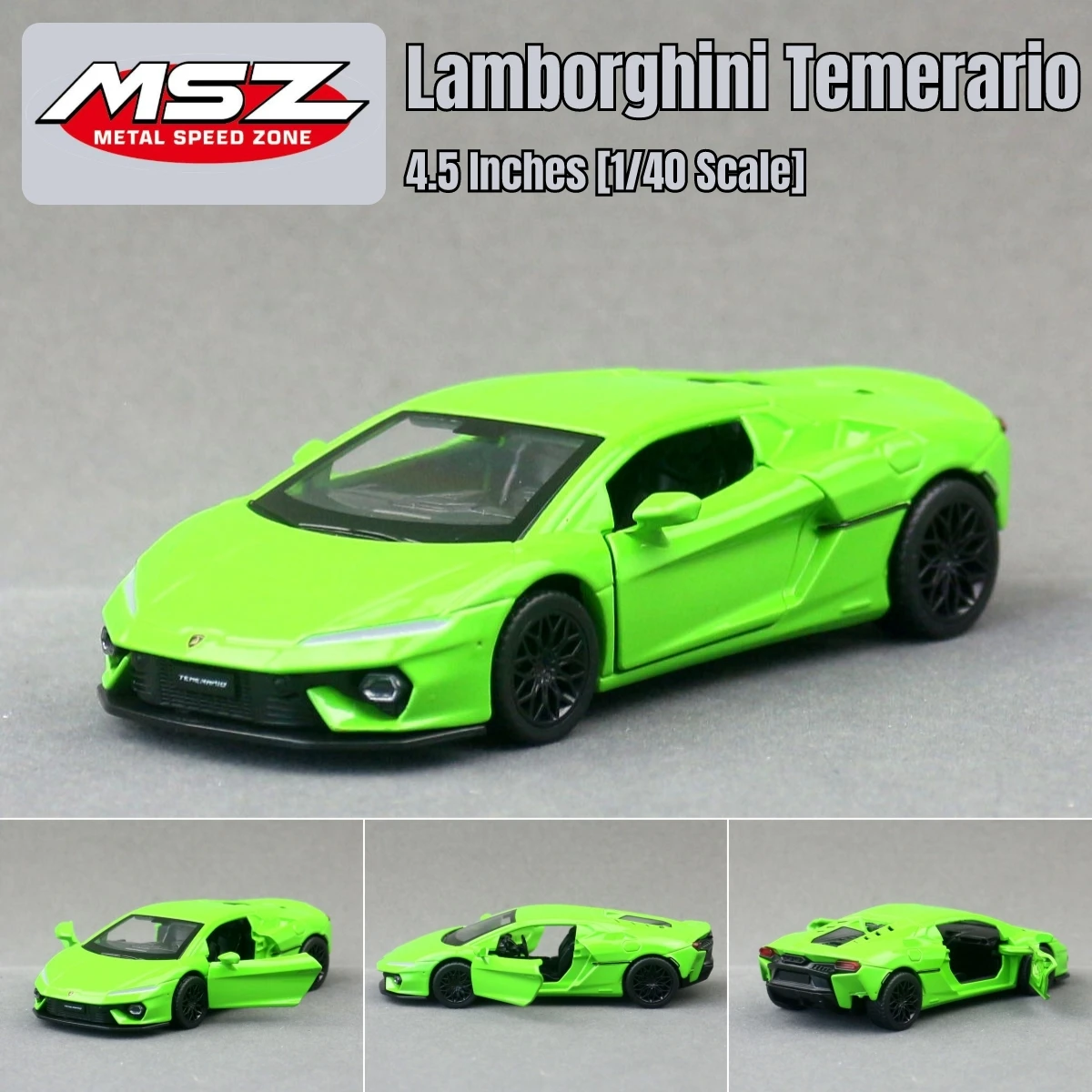 - This diecast model is a 1:40 scale replica, measuring approximately 4.5″ for authentic display and collection purposes. It offers a precise visual reproduction of the Lamborghini Temerario design.