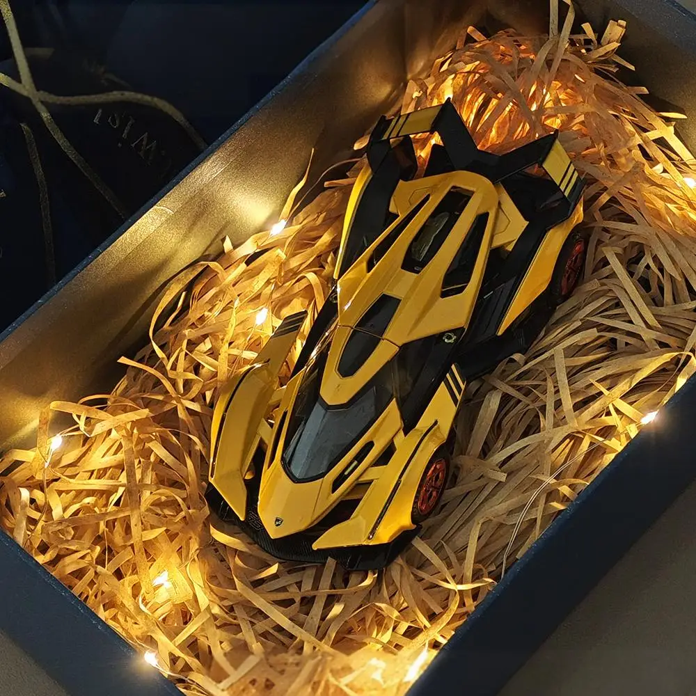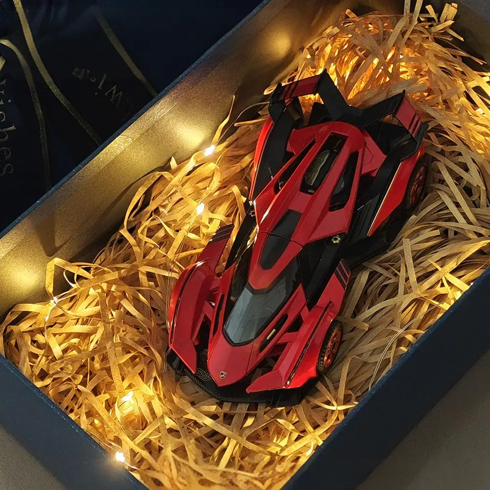 - The vibrant color options include blue, red, or yellow gift boxes, each highlighting the colorful and eye-catching design of the supercar model.