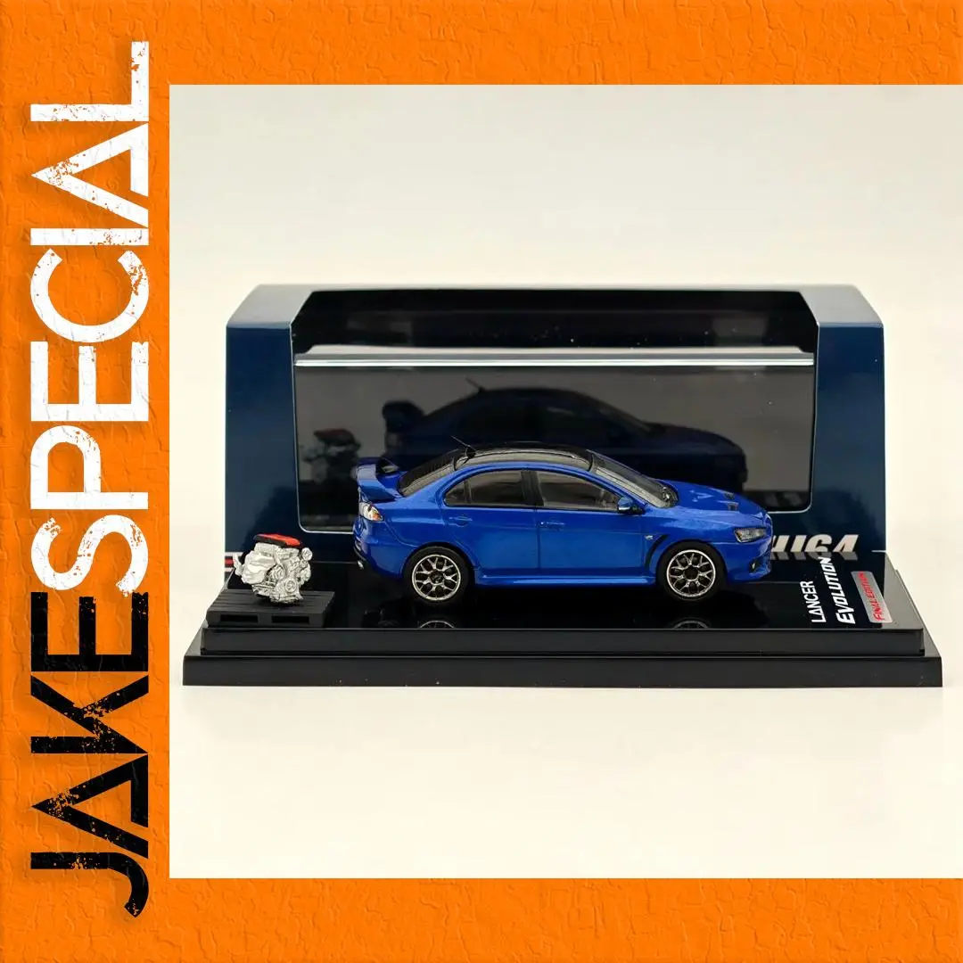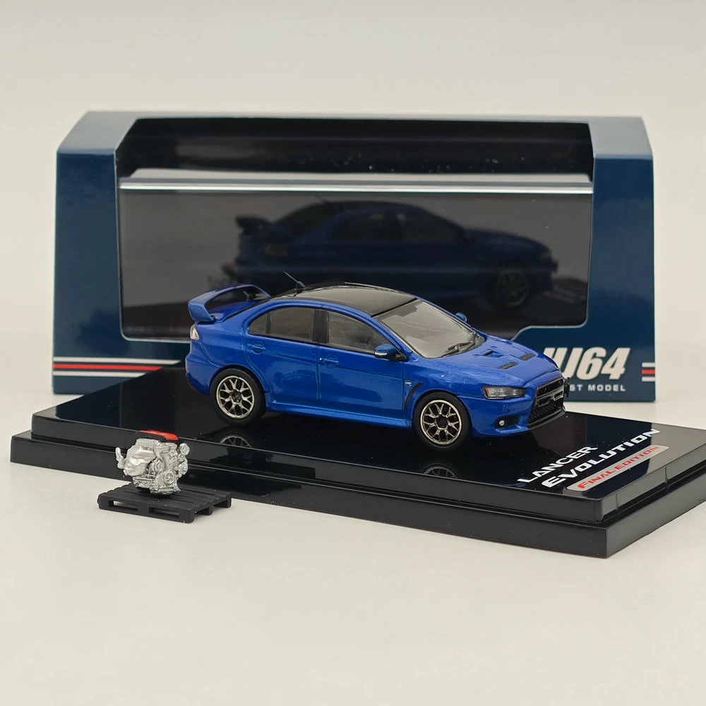 Experience the allure of the Lancer Evolution X Final Edition in a captivating lighting blue finish paired with a sleek black roof. This meticulously crafted 1:64 scale diecast model invites you to appreciate the intricate details, including realistic headlights, a defined front grille, and beautifully designed alloy rims with textured tires. Accompanying the car is a stunning engine display featuring a metallic finish with vibrant red and silver accents. Mounted on a premium black base with the name “LANCER EVOLUTION,” this model is perfect for collectors and enthusiasts alike. Its compact dimensions make it suitable for display, allowing it to fit seamlessly into your collection or as a striking decorative piece.