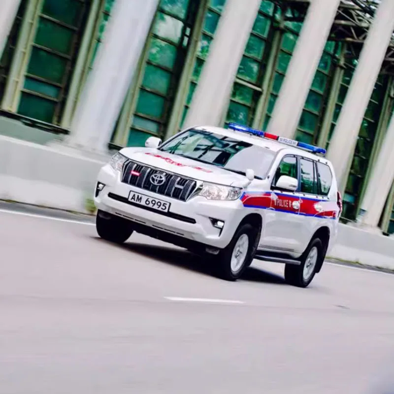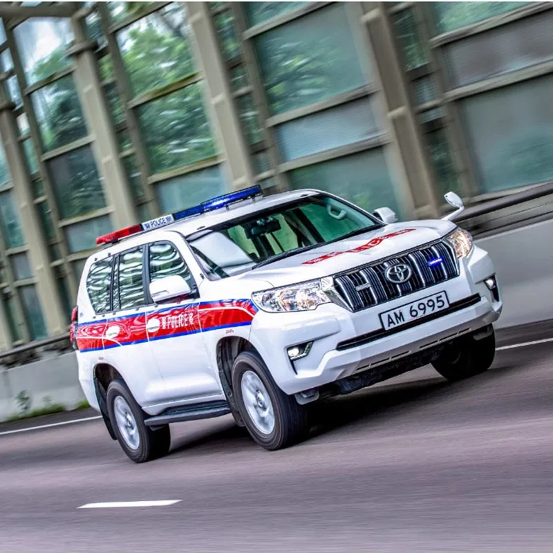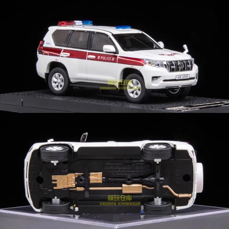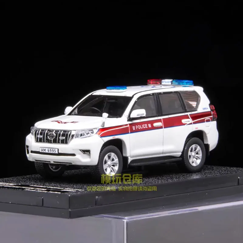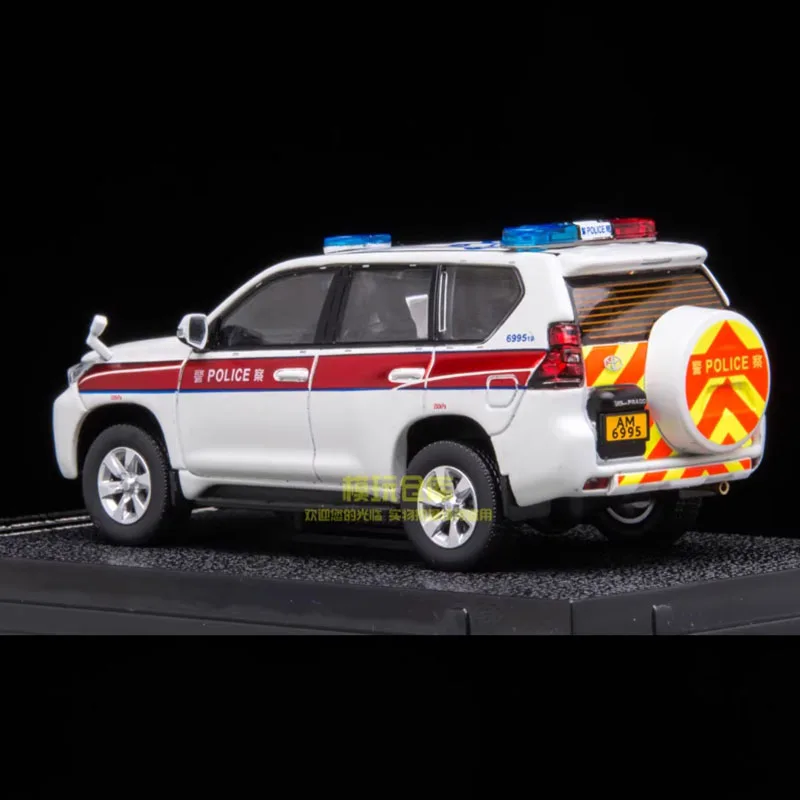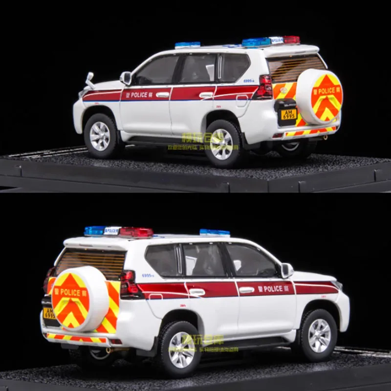 Capture the realism of the Land Patrol Prado 2018 police vehicle with this meticulously crafted 1:43 scale diecast model. Measuring approximately 11 cm long, 4 cm wide, and 4.5 cm high, it features a sleek white finish accented with vibrant red and blue police markings, a detailed grille, headlights, and side mirrors. The model includes a roof-mounted blue light bar with red and blue emergency lights, a spare tire with a bright chevron pattern, and intricately designed silver wheels. Made from alloy, rubber, and plastic, this collectible is perfect for display, gifts, or decorations, offering exceptional craftsmanship and true-to-life details for adult enthusiasts.