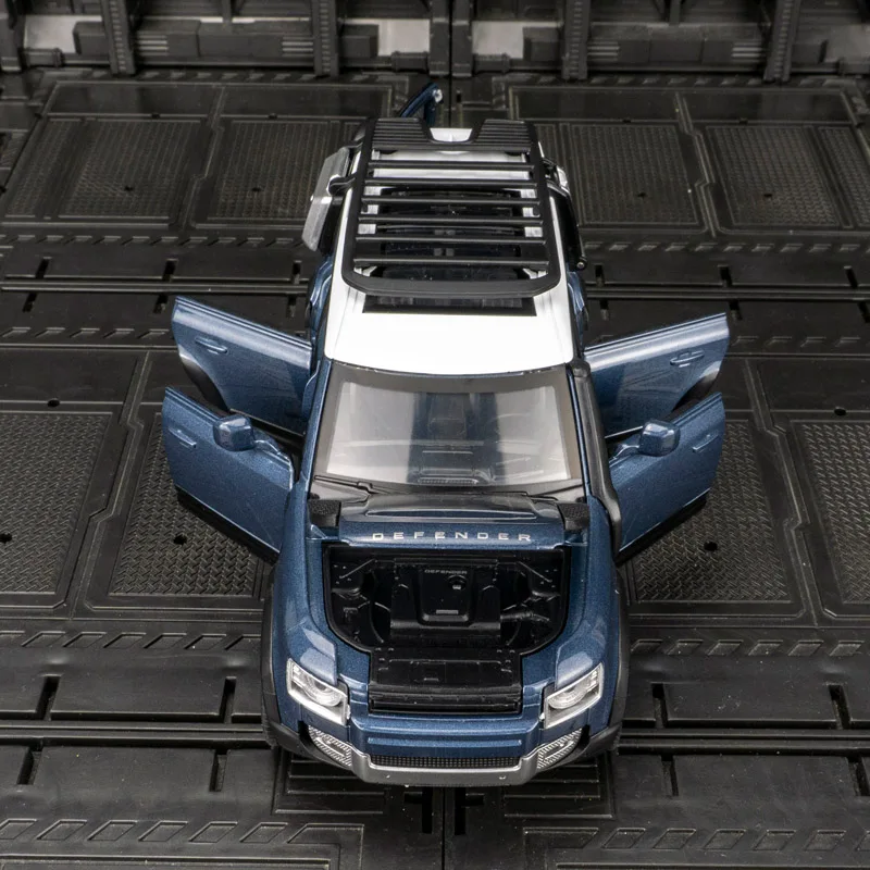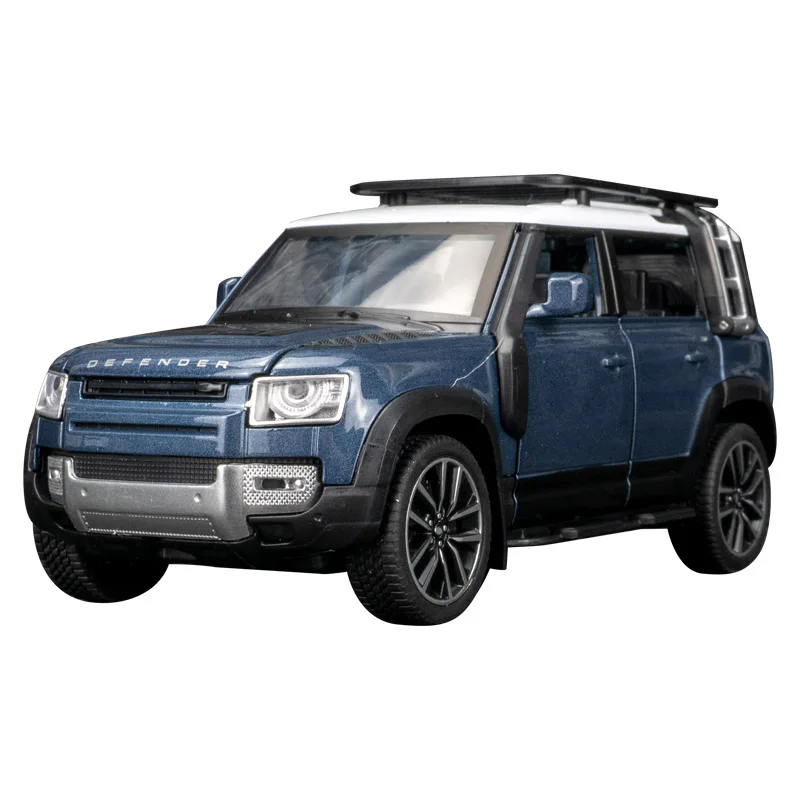 Experience the thrill of owning this exceptional 1:32 scale diecast model of a Land Rover Defender 110 in stunning metallic blue. Its realistic design captures the vehicle’s rugged yet refined appearance, with contrasting black accents and silver highlights. The textured rear doors and vented roof vents add depth and authenticity to its look, making it a perfect display piece. The model features functional opening doors, hood, and trunk, allowing you to showcase interior details and engine compartments, all crafted with precision from high-quality metal. Its multi-spoke black rims and off-road tires with tread patterns provide a rugged appearance. This model truly brings the iconic Defender 110 to life, perfect for enthusiasts and collectors alike, evoking a sense of adventure and craftsmanship.